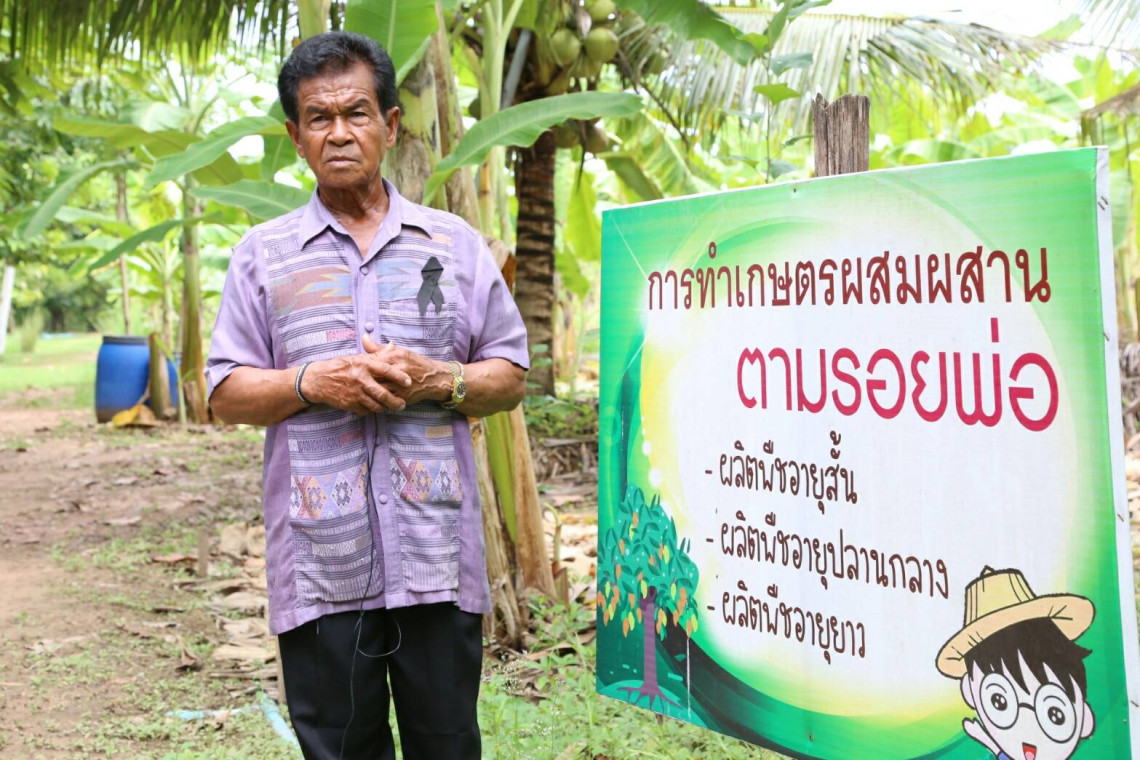 ครูภูมิปัญญาเกษตรผสมผสาน คนนี้ตอกย้ำ ถ้าใครมาทำเกษตรผสมผสานกับทฤษฎีของในหลวงรัชกาลที่ 9 ของเราจะหมดหนี้หมดสิน จะอยู่แบบครอบครัวมีความสุข ตอนนี้ในหมู่บ้านของลุง 60 กว่าครัวเรือนที่ทำเกษตรทฤษฎีใหม่ ประสบความสำเร็จอยู่แบบพอเพียงกันทั้งนั้น
