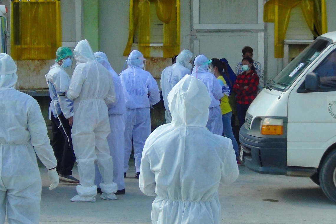 วันที่ 22 พ.ค.64 เวลา 15.30 น. ผู้สื่อข่าวรายงานว่าที่บริเวณโรงงานชำแหละเนื้อไก่แห่งหนึ่ง ในพื้นที่ ม.7 ต.เขาหินซ้อน อ.พนมสารคาม จ.ฉะเชิงเทรา เจ้าหน้าที่ฝ่ายสาธารณสุขและอาสาสมัครหน่วยกู้ภัยพนมสารคาม ได้นำรถยนต์กระบะแบบมีหลังคาไฟเบอร์ทึบจำนวน 2 คัน เป็นรถยนต์ตำรวจ สภ.พนมสารคาม 1 คัน รถกู้ภัย 1 คัน และรถยนต์ตู้อีก 2 คัน เดินทางมาลำเลียง เพื่อรับส่งคนงานของโรงงานแห่งนี้ไปทำการรักษาอาการ