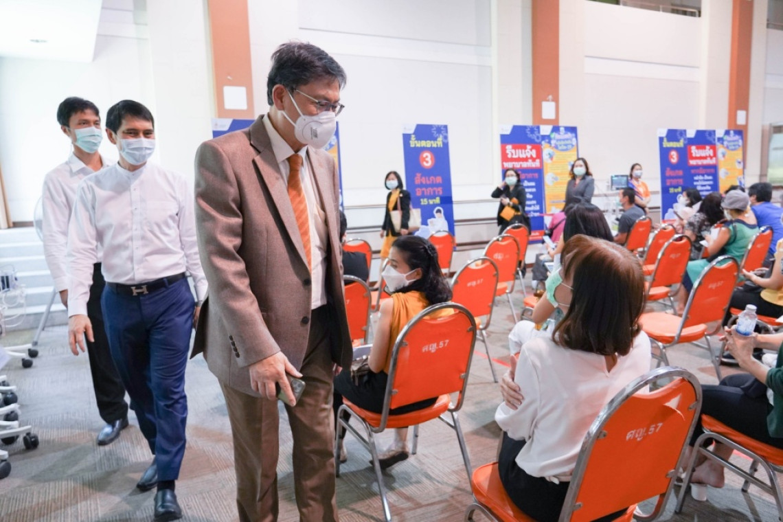 รมว.อว. นำทีมตรวจเยี่ยมหน่วยบริการฉีดวัคซีนโควิด-19 มหาวิทยาลัยเกษตรศาสตร์และราชวิทยาลัยจุฬาภรณ์ เผยเป็นการใช้ระบบการฉีดวัคซีนในรูปแบบใหม่ ให้ผู้เข้ารับบริการนั่งอยู่กับที่ มีพยาบาลเป็นผู้เดินฉีด และแพทย์เป็นผู้กำกับอย่างใกล้ชิด ใช้เวลาไม่เกิน 1 ชั่วโมงทั้งฉีดรวมทั้งสังเกตุอาการ “เอนก” ให้กำลังใจบุคลากรสร้างความเชื่อมั่นในการรับวัคซีน