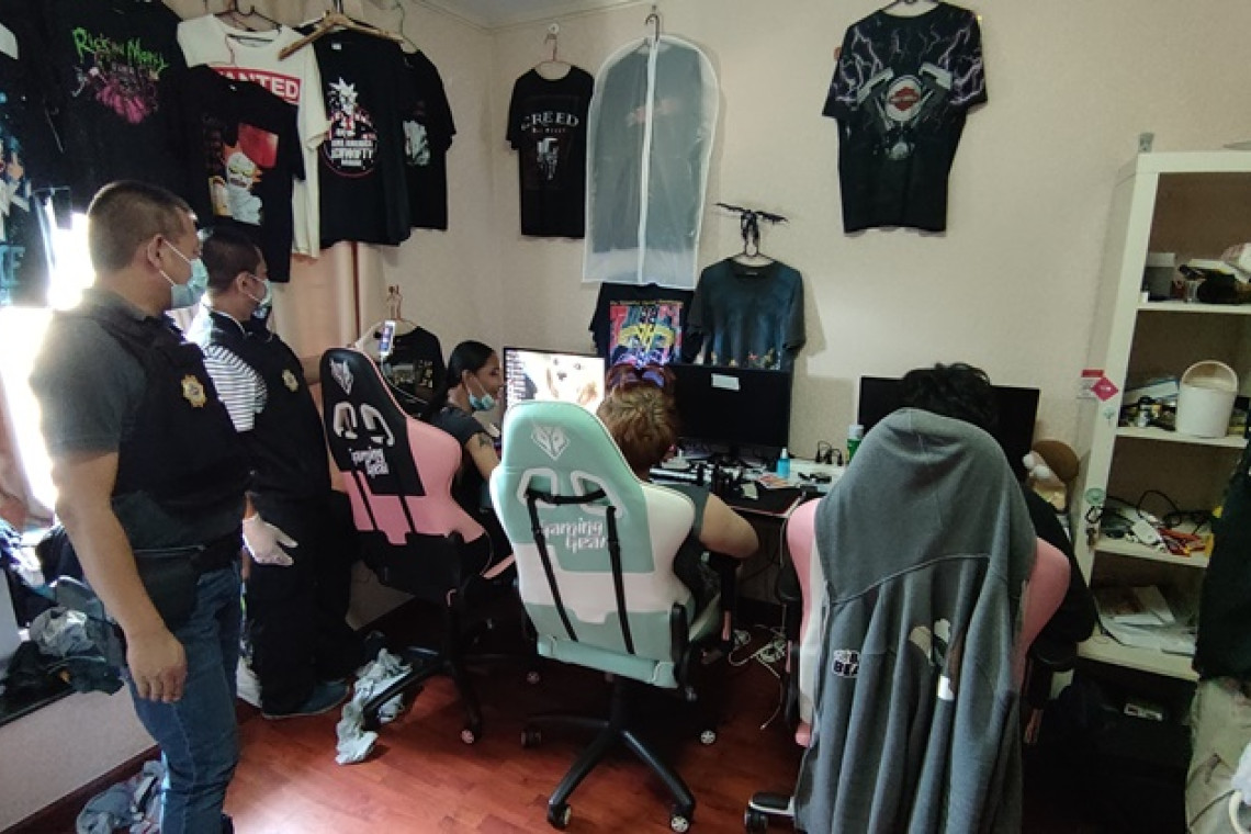 ที่เกิดเหตุเป็นบ้านเดี่ยว ความสูง 2 ชั้น ปลูกในรั้วรอบขอบชิด เจ้าหน้าที่ได้แสดงตัวพร้อมหมายค้น จากการตรวจค้นบริเวณห้องโถงชั้น 1 พบวัยรุ่นชายหญิง รวม 6 คน เป็นชาย 5 คน หญิง 1 คน กำลังพักผ่อนกันอยู่ ตรวจสอบลิ้นชักห้องนอน พบกระท่อมบรรจุในถุงพลาสติก 4 ถุง รวม 195 ใบ จากนั้น จึงขึ้นไปตรวจสอบห้องพักบนชั้นที่ 2 ห้องแรกพบคอมพิวเตอร์ 6 เครื่อง สภาพปิดเครื่องอยู่โดยแต่ละเครื่องมีโทรศัพท์มือถือและซองซิมโทรศัพท์ที่ใช้แล้ววางอยู่รวมกว่า 100 อัน อีกห้องพบกัญชาบรรจุในโหลแก้ว น้ำหนักรวม 17.25 กรัม พร้อมอุปกรณ์การเสพ จึงตรวจยึดไว้เป็นหลักฐานทั้งหมด