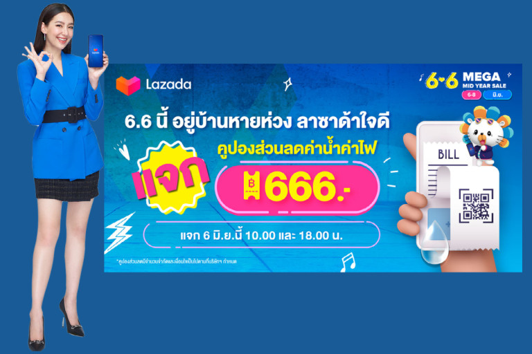 มหกรรมช้อปปิ้ง Lazada 6.6 Mega Mid Year Sale เซลใหญ่สุดในกลางปี กลับมาอีกครั้ง งานนี้นอกจากจะรวมดีลเด็ดๆ และสิทธิ์ประโยชน์มากมาย ลาซาด้าแจกหนักยิ่งกว่าเดิม มอบคูปองส่วนลดค่าน้ำค่าไฟเพื่อช่วยลดรายจ่ายของคนไทยช่วงโควิด โดยนักช้อปสามารถกดรับคูปองส่วนลด 66 บาท* และรับส่วนลด 666 บาท** สำหรับการจ่ายค่าน้ำค่าไฟ โดยคูปองส่วนลดนี้จะแจกในวันที่ 6 มิถุนายนวันเดียวเท่านั้น เตรียมเก็บได้ 2 ช่วงเวลา 10.00 น. และ 18.00 น. วิธีเก็บง่าย ใช้ง่าย เพียงแค่เข้าแอปพลิเคชันลาซาด้า แล้วคลิกที่ไอคอน “คูปองลดเพิ่ม” จากนั้นก็กดรับคูปองส่วนลดสำหรับการจ่ายค่าน้ำค่าไฟได้เลย และใช้คูปองเพื่อเป็นส่วนลดในการชำระค่าน้ำหรือค่าไฟผ่านแอปลาซาด้าได้ทันที ในวันที่ 6-8 มิถุนายน 2564 นี้เท่านั้น