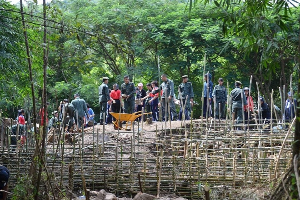 "กล้าอาสาสร้างฝายชะลอน้ำวัดป่าภูฮัง" ภายใต้โครงการ "กล้าแผ่นดินด้วยเศรษฐกิจพอเพียง" เพื่อถวายเป็นพระราชกุศลแด่ พระบาทสมเด็จพระปรมินทรมหาภูมิพลอดุลยเดช บรมนาถบพิตร ณ วัดป่าภูฮัง ต.นาแก อ.นาวัง จ.หนองบัวลำภู