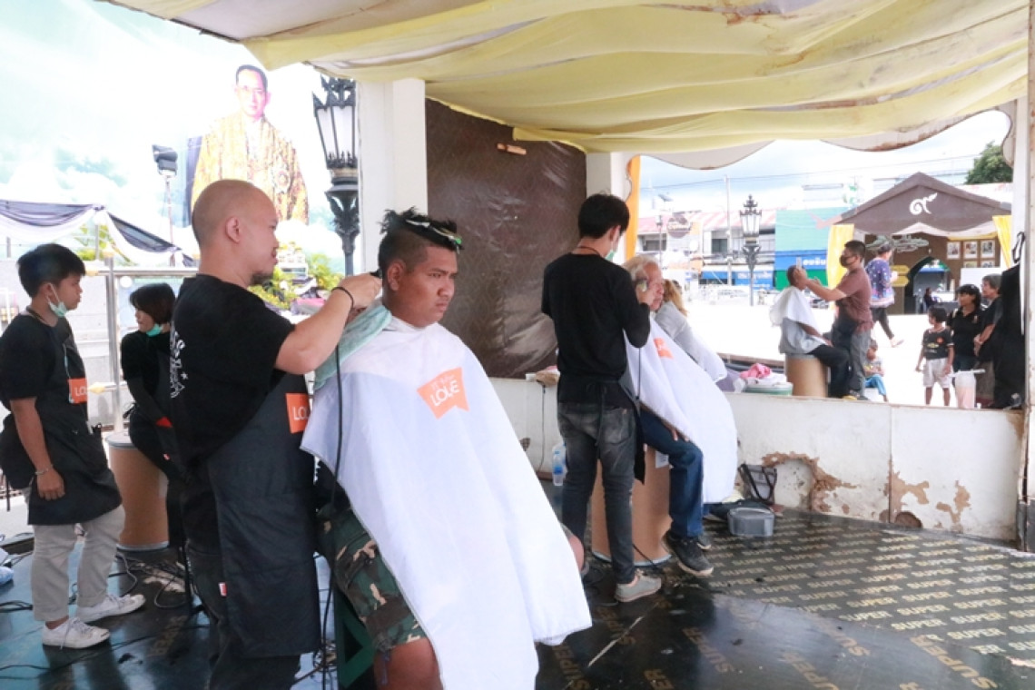 นายชินเทพ รินทะมาศ อายุ 29 ปี ช่างตัดผมจิตอาสา เปิดเผยว่า นายประจักษ์ ฯ เจ้าของร้าน ฯ ได้ขอความร่วมมือช่างตัดผมที่อยู่ในสังกัดจัดส่งตัวแทนมาให้บริการตัดผมชายฟรี ซึ่งเป็นการทำความดีด้วยใจไม่หวังสิ่งตอบแทนตามรอยพ่อหลวง ร.9 รวมทั้งถวายเป็นพระราชกุศล พระบาทสมเด็จพระปรมินทรมหาภูมิพลอดุลยเดช บรรดาช่าง ฯ ได้ให้ความร่วมมือ พร้อมใจมาเปิดบริการตัดแต่งทรงผมชายมาตรฐาน รูปแบบต่างๆ รวมถึงทรงผมสไตล์วินเทจที่กำลังได้รับความนิยม ขณะนี้มีทั้งเด็กเล็ก เด็กโต ผู้ใหญ่ ผู้สูงอายุ เพศชาย มาใช้บริการตัดผมจนถึงขณะนี้มีมากกว่า 300 คน โดยจะเปิดให้บริการตั้งแต่บัดนี้จนถึงวันที่ 31 ตุลาคม นี้