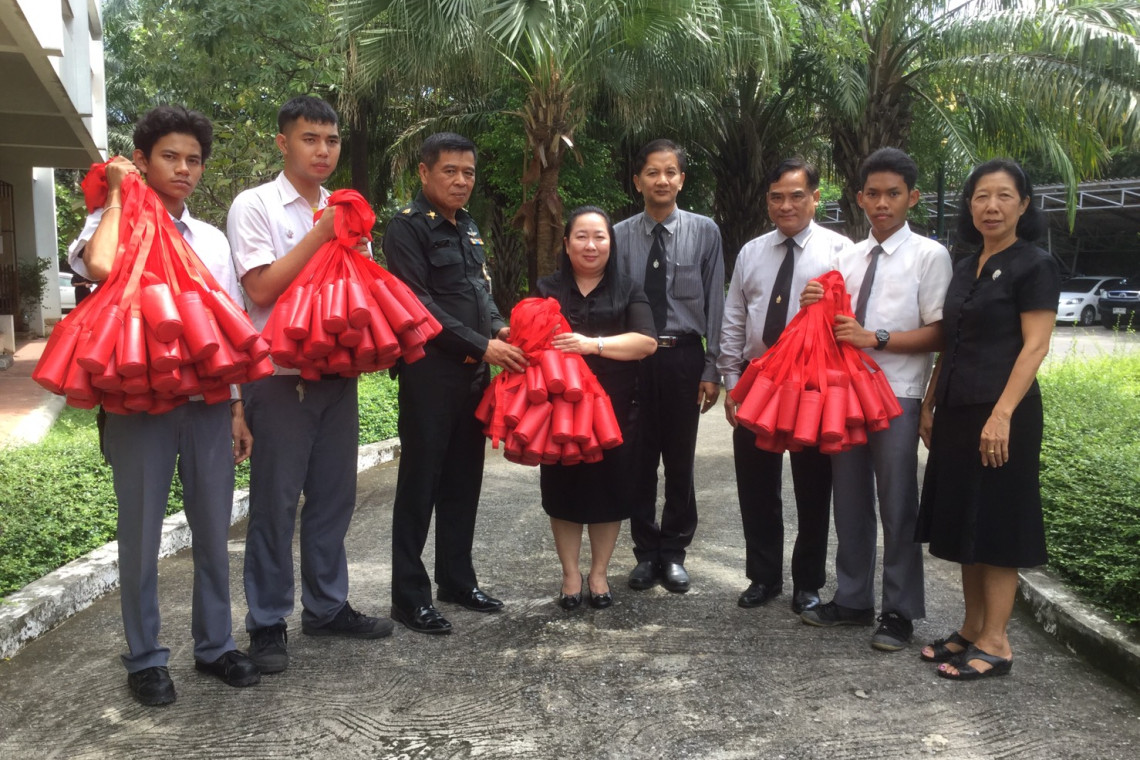 สำนักงานคณะกรรมการการอาชีวศึกษา โดย น.ส.ดาวเรือง จงสถาพร ผอ.วิทยาลัยศิลปหัตถกรรมกรุงเทพ นำคณะครู อาจารย์ ส่งมอบซองสะพายตัดเย็บจากหนัง เพื่อใช้บรรจุขวดน้ำดื่ม สำหรับพนักงานเจ้าหน้าที่ในริ้วขบวนพระราชพิธีถวายพระเพลิงพระบรมศพพระบาทสมเด็จพระปรมินทรมหาภูมิพลอดุลยเดช ซึ่งตัดเย็บโดยผู้เรียนและครูสาขาวิชาอุตสาหกรรมเครื่องหนัง