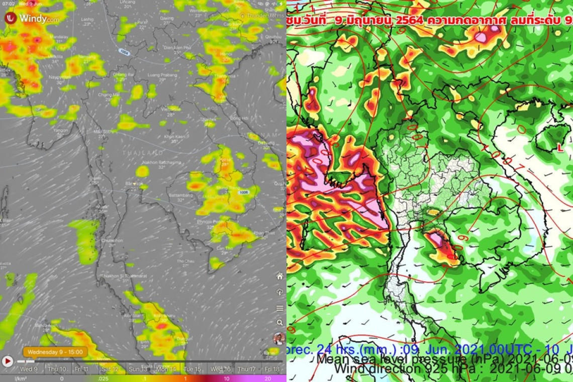 ด้านเพจหนุ่มสรรเสริญ เรืองฤทธิ์ สำนักการระบายน้ำกทม. โพสต์ผ่านเฟซบุ๊กระบุ “9 มิ.ย.64 ร่องมรสุมพาดผ่านภาคเหนือตอนบน ภาคตะวันออกเฉียงเหนือตอนบน ลมมรสุมตะวันตกเฉียงใต้พัดมาค่อนข้างแรง