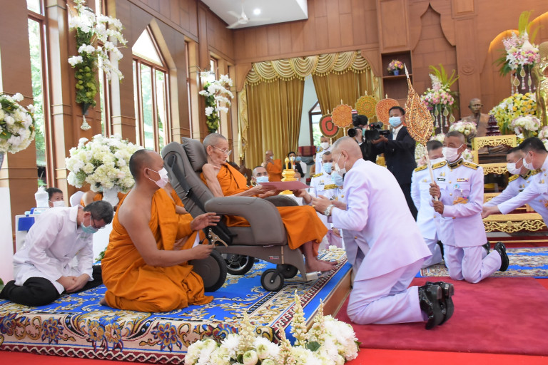 องคมนตรี เชิญสัญญาบัตร พัดยศและผ้าไตร ถวายแด่พระเทพมงคลวัชราจารย์ ณ วัดกระดึงทอง อำเภอบ้านด่าน จังหวัดบุรีรัมย์
