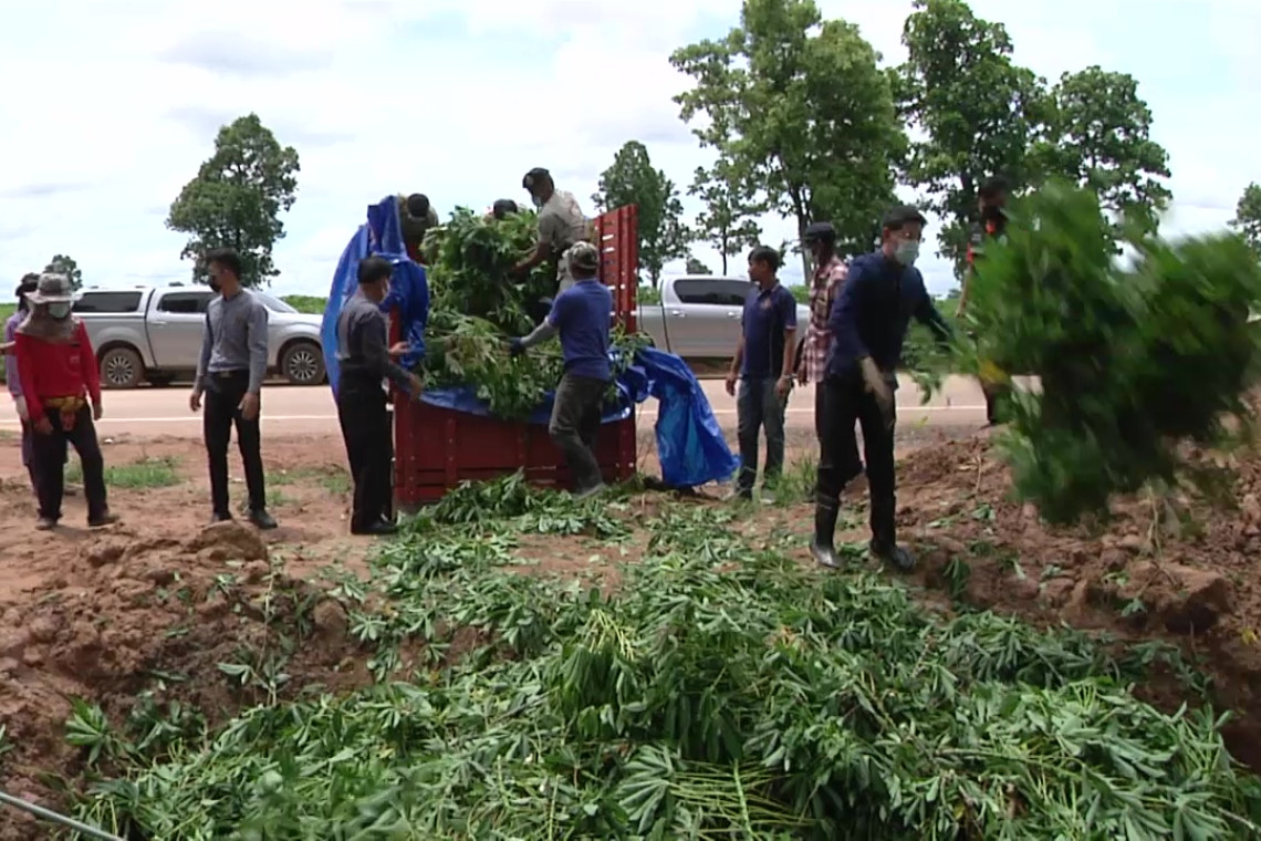 ที่บ้านโคกก่อง หมู่ 2 อ.ศรีธาตุ จ.อุดรธานี นายสยาม ศิริมงคล ผู้ว่าราชการจังหวัดอุดรธานี ลงพื้นที่เปิดปฏิบัติการทำลายโรคใบด่างมันสำปะหลังโดยการฝังกลบขุดรากถอนโคนตันมันสำปะหลัง ที่แปลงมันสำปะหลังบ้านโคกก่อง หมู่ที่ 2 ตำบลหนองนกเขียน อำเภอศรีธาตุ หลังผลการตรวจของกรมวิชาการเกษตร ระบุต้นมันในพื้นที่ 5 ไร่เป็นโรคใบด่าง พร้อมบินโดน ฉีดพ่นสารเคมีกำจัดวัชพืช แปลงข้างเคียง โดยมีนายเอนก รัตน์รองใต้ เกษตรจังหวัดอุดรธานี นางสาวศิริกัลยา กิจรักษา นายอำเภอศรีธาตุ หน่วยงานที่เกี่ยวข้องร่วมกิจกรรม ตัดทำลายต้นมันขนลงหลุม ราดด้วยสารเคมีกำจัดวัชพืชแล้วฝังกลบในความลึกไม่น้อยกว่า 2-3 เมตร สำหรับแปลงข้างเคียงที่มีการกระบาดเล็กน้อยจะทำลายต้นที่เป็นโรคและต้นข้างเคียง ในรัศมี 2 เมตร ป้องกันการระบาด ด้วยการตัดเป็นท่อนใส่ถุงหรือกระสอบตากแดดไม่น้อยกว่า 7 วัน ให้แห้งตาย