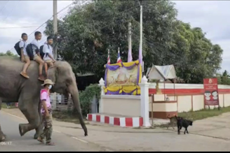 โลกโชเซียลแห่ชื่นชมนักเรียนชายสามคน นั่งช้างมาโรงเรียนเปิดเทอมวันแรก เจ้าของช้างเผยอยากให้เด็กๆสร้างสีสันบรรยากาศ เปิดเทอม และช้างตกงานจากสถานการณ์การแพร่ระบาดของเชื้อไวรัสโคโรนา หรือโควิด-19 อยู่ภายใต้การดูแลของควาญช้างปลอดภัยแน่นอน