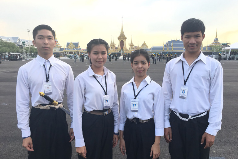 นายธณวัติ คงนิล นักศึกษาชั้นปีที่ 3 สาขาวิชานาฏศิลป์ไทย ตัวละครโขนยักษ์ (เสนายักษ์) เล่าว่า ตอนที่ได้รับคัดเลือกเล่นโขนพระราชทานรู้สึกเป็นเกียรติ และภาคภูมิใจเป็นอย่างยิ่ง ที่ได้เป็นส่วนหนึ่งในงานพระราชพิธีถวายพระเพลิงพระบรมศพ เพราะเป็นการแสดงเพื่อรำลึกในพระมหากรุณาธิคุณของในหลวงรัชกาลที่ 9 ...โขนเป็นนาฏศิลป์ชั้นสูง เป็นมรดกตกทอด พระองค์ทรงอนุรักษ์การแสดงโขน อยากให้คนไทยได้สืบสานวัฒนธรรมแขนงนี้ไปจนรุ่นลูกรุ่นหลาน
