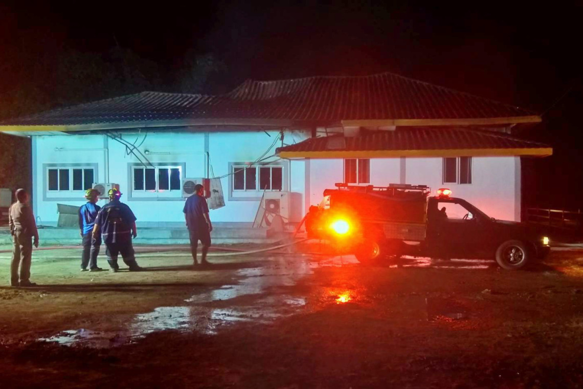 โดยเจ้าหน้าที่ต้องใช้เวลาในการควบคุมเพลิงเป็นเวลานานเกือบ 2 ชม. เพลิงจึงสงบลงเมื่อเวลา 03.30 น. พบภายในตัวอาคารซึ่งปลูกสร้างด้วยคอนกรีตเสริมเหล็กได้รับความเสียหายทั้งหมด พร้อมกับเฟอร์นิเจอร์ตกแต่งภายใน สอบถามนางวิไล ศิริพงค์ อายุ 62 ปี อยู่บ้านเลขที่ 141/4 ม.5 ต.เกาะขนุน ชาวบ้านข้างเคียง ซึ่งมีบ้านเรือนพักอาศัยอยู่ห่างออกไปประมาณ 100 เมตร จากจุดเกิดเหตุ เล่าว่า ขณะที่กำลังนอนหลับพักผ่อนอยู่ภายในบ้านได้ยินเสียงระเบิดขึ้น 2-3 ครั้ง