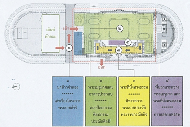 2. นั่งรอเต้นท์พักคอย / ถ่ายภาพที่ระลึกบริเวณถนนเส้นกลางทางเข้าพระเมรุมาศ และภูมิทัศน์ต่างๆ ใช้เวลา 15 นาที
