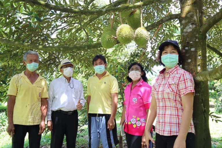 วันนี้ (22 มิถุนายน 2564) นายวสันต์ สุขสุวรรณ เกษตรจังหวัดตรัง พร้อมด้วยนางอุไร แสงภักดี หัวหน้ากลุ่มส่งเสริมและพัฒนาการผลิต สำนักงานเกษตรจังหวัดตรัง นางนิตยา จันทร์ประทีป เกษตรอำเภอปะเหลียน นักวิชาการส่งเสริมการเกษตรสำนักงานเกษตรอำเภอปะเหลียน และอาสาสมัครเกษตรหมู่บ้าน ลงพื้นที่ติดตามสถานการณ์ไม้ผล เพื่อประเมินสถานการณ์ผลผลิต ปี 2564 ณ แปลงพยากรณ์ นายจรัล แซ่เอี้ยว หมู่ที่ 3 ตำบลทุ่งยาว อำเภอปะเหลียน จังหวัดตรัง ซึ่งปลูกไม้ผลแบบผสมผสาน บนเนื้อที่ 14 ไร่ โดยปลูกทุเรียนหลากหลายสายพันธุ์