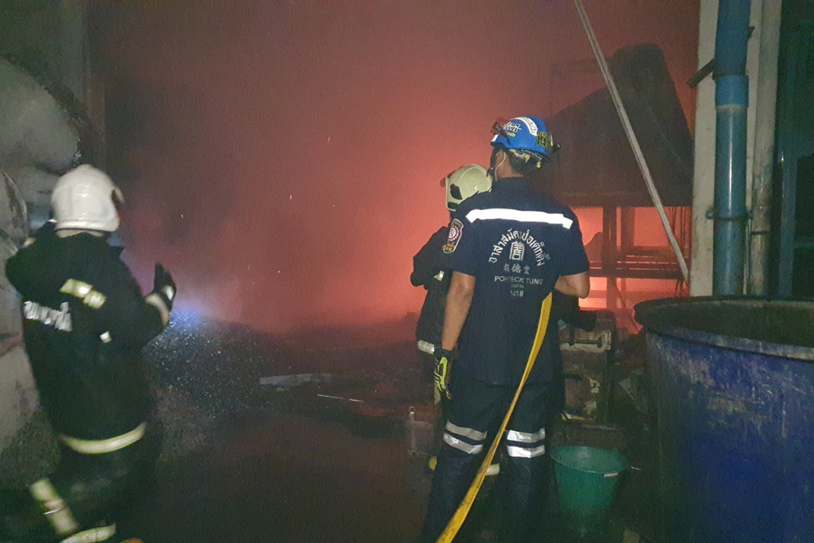ที่เกิดเหตุพบว่าเป็นโรงงานรีไซเคิลพลาสติกเก่าและอัดเม็ด ได้พบเพียงกลุ่มควันสีดำจำนวนมากพวยพุ่งออกมาจากด้านใน ซึ่งเป็นอาคารชั้นเดียว เปลวเพลิงได้ลุกไหม้กองพลาสติกอยู่ภายในบริเวณเครื่องบดพลาสติกและเตาหลอมที่ตั้งเรียงลายอยู่ภายในอาคารโรงงานดังกล่าวเจ้าหน้าที่ได้ช่วยกันระดมฉีดน้ำสกัดเพลิงอยู่นานกว่า 1 ชั่วโมงเพลิงจึงสงบ พบว่าเพลิงได้ลุกเผาผลาญเครื่องบดเม็ดพลาสติกและเตาหลอมได้รับความเสียหายไปจำนวนเกือบ 10 เครื่องและเศษพลาสติกเก่าที่รอเข้าเตาหลอมได้รับความเสียหายไปกว่าครึ่ง ส่วนค่าเสียหายยังไม่สามารถประเมินได้