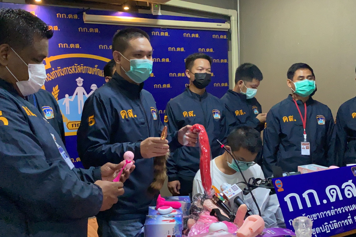 หลังจากชุดสืบสวนมีข้อมูลว่าผู้ต้องหาลักลอบจำหน่ายสิ่งกระตุ้นอารมณ์ทางเพศผ่านทางเฟสบุ๊ก และแอปพลิเคชั่นไลน์ มีลูกค้าติดตาม และติดต่อขอซื้อเป็นจำนวนมาก แต่ไม่ได้มีการขออนุญาตอย่างถูกต้อง ชุดสืบสวนจึงได้ทำการติดต่อขอซื้อและได้ตรวจสอบข้อมูลจนทราบแหล่งที่อยู่ที่ชัดเจน จึงนำพยานหลักฐานไปขอหมายค้นจากศาลจังหวัดมีนบุรี และนำกำลังไปตรวจค้นที่บ้านเดียวหลังหนึ่งในซอยรามคำแหง 174 ในที่เกิดเหตุพบของกลางเป็นจำนวนมาก จึงเข้าควบคุมตัวและยึดของกลางทั้งหมด