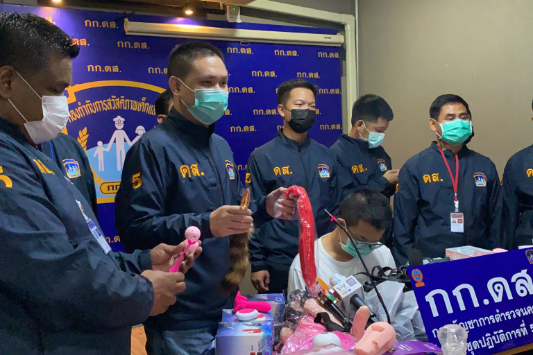 จากการสอบปากคำผู้ต้องหาให้การรับสารภาพว่า จำหน่ายของกลางดังกล่าวมาเกือบ 1 ปีแล้วโดยรับกิจการต่อมาจากเพื่อนชาวจีนที่เดินทางกลับประเทศ โดยจะจัดจำหน่ายผ่านทาง LINE และจะไปจัดส่งผ่านทางพัสดุเอกชนด้วยตนเอง โดยต้นทุนของสินค้าที่นำเข้ามาจากประเทศจีน ตกชิ้นละ หลักสิบบาทถึงหลักร้อยบาท แต่จะนำไปขายทำกำไรได้หลายเท่า จึงตัดสินใจเปิดขายเรื่อยมาจนกระทั่งมาถูกจับกุมตัวได้