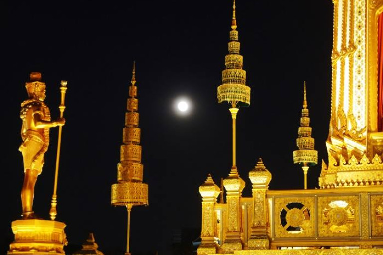 แน่นอนว่าทุกคนต้องการบันทึกภาพพระเมรุมาศเก็บไว้เป็นที่ระลึก ภาพพระเมรุมาศจะวิจิตรงดงามต้องถ่ายภาพช่วงเวลายามเย็น แสงตะวันรำไรจะขับผ้าทองย่นสีทององค์พระเมรุมาศ ยิ่งพลบค่ำไปแล้วแสงไฟที่สาดส่ององค์พระเมรุมาศ ขับผ้าทองย่นสีทองสุกสกาวทั้งองค์ดั่งเทพวิมาน ที่แต่ละชั้นชาลาพระเมรุมาศรายล้อมไปด้วยประติมากรรม พื้นลานรอบไปด้วยสระอโนดาต สัตว์หิมพานต์นานาชนิดประดับในสระ เสมือนเชิงเขาพระสุเมรุตามคติความเชื่อเรื่องโลกและจักรวาลในไตรภูมิ