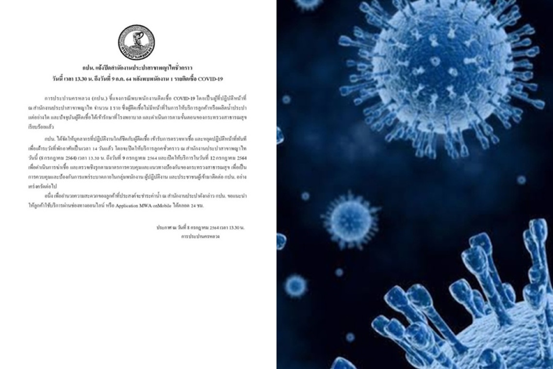 การประปานครหลวง (กปน.) ชี้แจงกรณีพบพนักงานติดเชื้อ COVID-19 โดยเป็นผู้ที่ปฏิบัติหน้าที่ ณ สำนักงานประปาสาขาพญาไท จำนวน 1 ราย ซึ่งผู้ติดเชื้อไม่มีหน้าที่ในการให้บริการลูกค้าหรือผลิตน้ำประปาแต่อย่างใด และปัจจุบันผู้ติดเชื้อได้เข้ารักษาที่โรงพยาบาล และดำเนินการตามขั้นตอนของกระทรวงสาธารณสุขเรียบร้อยแล้ว