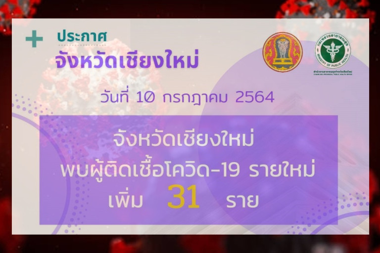 ศูนย์บัญชาการสถานการณ์การระบาดโรค Covid-19 จังหวัดเชียงใหม่ แถลงผู้ติดเชื้อรายใหม่ 31 รายวันนี้ ส่วนใหญ่เป็นการติดเชื้อในพื้นที่ แจ้งด่วนเจ้าหน้าที่ร้านค้าที่รับสินค้ากับโรงงานขนมปัง สาขาสันกำแพง เข้ารับการตรวจหาเชื้อได้ที่โรงพยาบาลทุกแห่ง วันที่ 10 ก.ค. 64 ที่ศูนย์บัญชาการสถานการณ์การระบาดโรค Covid-19 จังหวัดเชียงใหม่ ดร.ทรงยศ คำชัย หัวหน้ากลุ่มงานควบคุมโรคติดต่อ สำนักงานสาธารณสุขจังหวัดเชียงใหม่ แถลงสถานการณ์การระบาดโรค Covid-19 จังหวัดเชียงใหม่ประจำวัน ว่าวันนี้จังหวัดเชียงใหม่พบผู้ติดเชื้อรายใหม่เพิ่มขึ้น 31 ราย ทำให้ยอดผู้ติดเชื้อสะสมระลอกตั้งแต่ 1 เมษายน 2564 เป็น 4,356 ราย รักษาหายแล้ว 4,146 ราย ยังคงมีผู้รักษาตัวอยู่ในโรงพยาบาลทุกประเภท จำนวน 181 ราย แยกเป็นโรงพยาบาลสนาม 33 ราย โรงพยาบาลรัฐ 100 ราย และโรงพยาบาลเอกชน 48 ราย โดยในวันนี้ไม่มีผู้เสียชีวิตเพิ่ม ทำให้ยอดผู้เสียชีวิตสะสมของจังหวัดเชียงใหม่ยังอยู่ที่ 26 ราย ขณะที่กลุ่มผู้ติดเชื้อที่ยังรักษาตัวอยู่นั้น แยกเป็นกลุ่มผู้ป่วยที่ไม่มีอาการหรืออาการเล็กน้อย (สีเขียว) 103 ราย อาการปานกลาง (สีเหลือง) 61 ราย อาการค่อนข้างหนัก (สีส้ม) 16 ราย และผู้ป่วยอาการหนัก (สีแดง) 1 ราย การตรวจคัดกรองหาเชื้อโควิด-19 ในกลุ่มผู้สัมผัสหรือผู้เสี่ยงสูง เมื่อวานนี้ (9 ก.ค. 64) ตรวจไป 2,067 ราย พบผู้มีผลบวก 30 ราย คิดเป็นร้อยละ 1.45 ส่วนผู้ติดเชื้ออีก 1 ราย ได้ตรวจพบเชื้อจากกรุงเทพมหานคร สำหรับปัจจัยเสี่ยงในการติดเชื้อยังคงเป็นผู้ติดเชื้อที่เดินทางมาจากพื้นที่ควบคุมสูงสุดและเข้มงวด และพบว่ามีการติดเชื้อต่อไปในครอบครัว ชุมชน และสถานที่ทำงานเพิ่มสูงขึ้น ส่วนการตรวจเชิงรุกในแรงงานต่างด้าว มีรายงานเพิ่มเข้ามา 4 อำเภอ คือ อำเภอแม่แตง อำเภอแม่อาย อำเภอสันกำแพง และอำเภอกัลยาณิวัฒนา ตรวจไป 1,081 ราย ทั้งหมดไม่พบเชื้อ ทั้งนี้จากการประเมินเบื้องต้น พบว่าแคมป์แรงงานที่ทำงานอยู่ในจังหวัดเชียงใหม่ตลอดเวลา จะมีความปลอดภัยสูง แต่ถ้ามีแรงงานหรือผู้ใดในแคมป์เดินทางไปในพื้นที่เสี่ยงและกลับมาก็อาจทำให้เกิดการแพร่ระบาดของเชื้อเหมือนคลัสเตอร์ไซต์งานที่แยกศาลเด็กได้ การตรวจผู้ที่เดินทางเข้ามาในจังหวัดเชียงใหม่ เมื่อวานนี้ที่จุดตรวจเฉพาะกิจท่าอากาศยาน ตรวจไป 522 ราย พบเชื้อ 1 ราย ที่สถานีรถไฟ ตรวจไป 11 ราย ทั้งหมดไม่พบเชื้อ ส่วนที่สถานีขนส่งอาเขต ตรวจไป 56 ราย อยู่ระหว่างการรอผล โดยในเดือนกรกฎาคม มีผู้ที่เดินทางเข้ามาในจังหวัดเชียงใหม่แล้วจำนวน 187 ราย พบผู้มีผลบวก 80 ราย คิดเป็นร้อยละ 42.78 ซึ่งพบว่าเป็นผู้ที่เดินทางมาจ