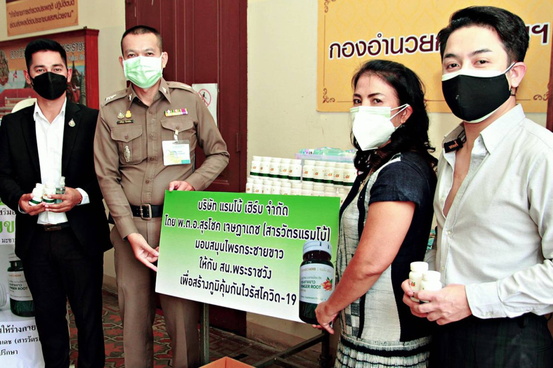 โดย บริษัท แรมโบ้เฮิร์บ จำกัด ได้นำไปแจกจ่ายให้พี่น้องประชาชนเฉพาะกลุ่มผู้สัมผัสผู้ติดเชื้อโควิด – 19 ที่บ้านไพรสาลี หมู่ที่ 1 ตำบลดอนเมือง อำเภอสีคิ้ว จังหวัดนครราชสีมา และนำออกแจกจ่ายให้กับเจ้าหน้าที่ตำรวจ ครอบครัว หลาย ๆ แห่งและกลุ่มผู้สุ่มเสี่ยงเชื้อโควิด – 19 ทั่วไป