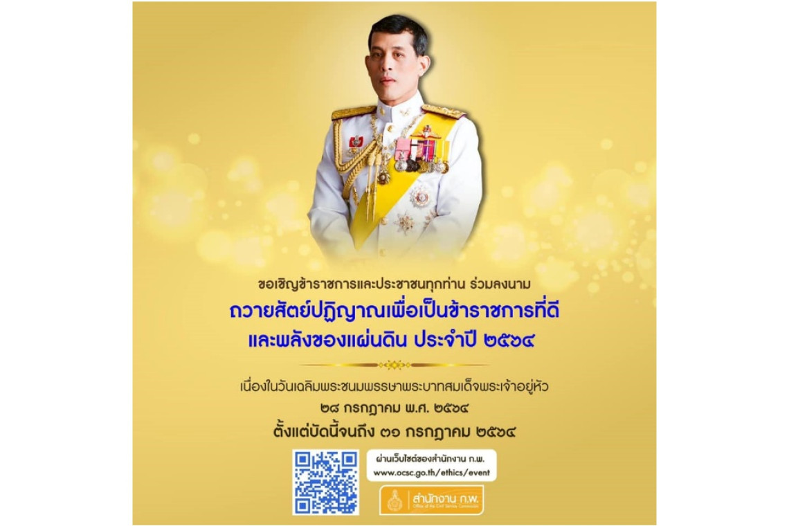 ตั้งแต่บัดนี้จนถึง 31 กรกฎาคม 2564 ได้ทางเว็บไซต์สำนักงาน ก.พ. www.ocsc.go.th/ethics/event