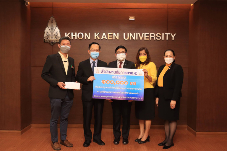 นายชวลิต วงศานรเศรษฐ์ อธิบดีอัยการภาค 4 มอบหมายให้ พันตำรวจตรีสันติ มุริจันทร์ อัยการจังหวัดประจำ สำนักงานอัยการสูงสุด ปฏิบัติราชการในตำแหน่งเลขานุการ พร้อมด้วยนางปาริชาติ ลิ้มเจริญ อัยการจังหวัดประจำสำนักงานอัยการสูงสุด เป็นผู้มอบเงินเพื่อช่วยเหลือบุคลากรทางการแพทย์และผู้ป่วย ในช่วงสถานการณ์การแพร่ระบาดของโรคติดเชื้อไวรัสโคโรนา 2019 แก่มูลนิธิคณะแพทย์ศาสตร์ จำนวน 120,000 บาท โดยมี รศ.นพ.ชาญชัย พานทองวิริยะกุล อธิการบดีมหาวิทยาลัยขอนแก่น พร้อม ผศ.นพ.ชวกิจ ภูมิบุญชู รองคณบดีฝ่ายศูนย์ความเป็นเลิศ และศูนย์กลางบริการสุขภาพ คณะแพทยศาสตร์ และ นางณัฐสมล ธนกุลรังสฤษดิ์ ผู้ช่วยอธิการบดีฝ่ายกิจการพิเศษ เป็นผู้รับมอบ ณ ห้องประชุมชั้น 6 อาคารสิริคุณากร มหาวิทยาลัยขอนแก่น