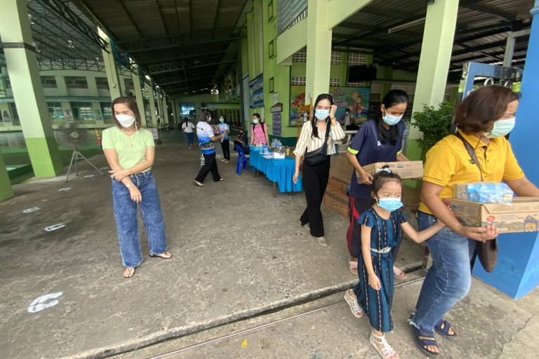 โดยผู้บริหารและครูประจำชั้น ของโรงเรียนอนุบาลตราดได้เข้ามาอำนวยความสะดวกให้ผู้ปกครองที่มารับทั้งใบงานและนมโรงเรียนที่ต้องนำไปให้บุตรหลานได้รับประทานด้วย
