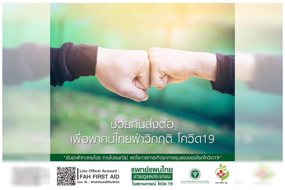 เพจ "กรมการแพทย์แผนไทยและการแพทย์ทางเลือก" โพสต์ภาพและข้อความระบุว่า ...
