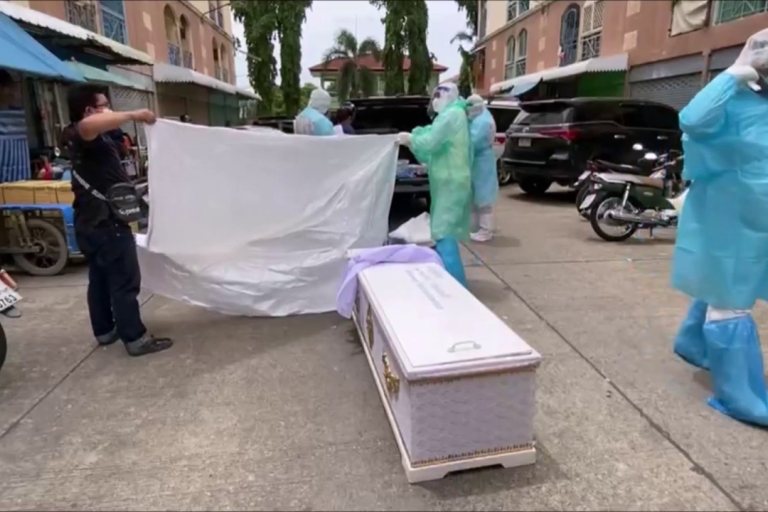 เมื่อเวลา 11.00 น. วันที่ 22 ก.ค.64 พนักงานสอบสวน สภ.บางบัวทอง ได้รับแจ้งมีเหตุคนผูกคอเสียชีวิต ที่คอนโดแห่งหนึ่ง ถ.กาญจนาภิเษก ต.พิมลราช อ.บางบัวทอง จ.นนทบุรี เข้าตรวจสอบภายในห้องพบผู้เสียชีวิต เป็นชายอายุ 73 ปี ทราบชื่อคือนายเช้า สิงโตใช้เชือกไนลอน สีเขียวผูกคอตัวเองเสียชีวิต จากการสอบถามลูกชาย เล่าว่า เมื่อวันที่ 15 ก.ค.64 พ่อโทรศัพท์มาหาบอกว่าไม่มีแรง ให้เอาข้าวมาส่งให้หน่อยตนจึงรีบเอาข้าวมาให้ที่ห้องพักแต่ตอนนั้นยังไม่รู้ว่าพ่อป่วยเพราะติดเชื้อโควิด-19 ต่อมาพ่อได้เดินทางไปหาหมอที่ รพ.หลังจากตรวจแล้วทาง รพ.แจ้งว่าพ่อติดเชื้อโควิด-19 ตนได้ประสานขอความช่วยเหลือไปที่ผู้ใหญ่หลายท่านในจังหวัดนนทบุรีที่รู้จักให้ช่วยหาเตียงเพื่อพาพ่อไปรักษาตัว ซึ่งผู้ใหญ่ก็รับปากว่าจะช่วยเหลือจนกระทั่งเมื่อวานนี้พ่อได้โทรศัพท์มาหาตนบอกว่า ไม่ไหวแล้วหายใจไม่ออกเหนื่อย ตนจึงบอกพ่อว่าอดทนรอหน่อยกำลังตามเรื่องเตียงอยู่ จนมาวันนี้ ตอนเช้า เจ้าหน้าอสม.ได้โทรศัพท์มาหาตนบอกว่าพ่อผูกคอเสียชีวิตแล้ว "ตนทำข่าวมานานหลายปี โดยเฉพาะช่วงโควิด-19 ระบาด เสนอข่าวช่วยเหลือผู้ป่วยโควิดจนได้รับการส่งตัวรักษาใน รพ.สนาม แต่กับพ่อตัวเองแท้ๆตนกับช่วยอะไรไม่ได้เลย ผู้ใหญ่ขอเอกสาร หลักฐานอะไร ตนก็ส่งไปให้ตามระเบียบ ส่งให้จนครบ ตนรู้สึกเสียใจมากๆที่ผู้ใหญ่ในจังหวัดรับปากแล้ว แต่กลับช่วยพ่อตนไม่ได้เลย" ด้านน.ส.ปริษา ถูวนาทศุภกิจ อสม.รพ.สต. หมู่. 12 ต. บางบัวทอง กล่าวว่า ผู้เสียชีวิตมีอาชีพเป็นรปภ.อยู่ที่คอนโด เริ่มมีอาการป่วยติดเชื้อโควิด-19 เมื่อวันที่ 7 ก.ค.ที่ผ่านมา และได้ติดต่อมาที่ตนเพื่อขอเข้ารับการรักษาตัวที่รพ.สนามแต่ยังไม่ได้คิวเข้ารักษาเนื่องจากทางรพ.สนามเองก็มีผู้ป่วยเป็นจำนวนมาก เราจึงทำได้เพียงทำอาหารมาส่งให้กับผู้เสียชีวิตตลอด 3 มื้อ โดยครั้งสุดท้ายที่พบผู้เสียชีวิตคือเมื่อวานนี้ตนได้นำข้าวสารมาวางไว้ที่หน้าห้องแต่ลุงก็ไม่ได้ออกมาเอา จนกระทั่งเช้าเจ้าหน้าที่รปภ.ของหอพักโทรศัพท์ไปแจ้งตนว่าผู้เสียชีวิตเงียบขาดการติดต่อไป ตนจึงให้เจ้าหน้าที่นำกุญแจสำรองมาไข้ห้องเข้าไปดูก็พบเสียชีวิตแล้ว "ตนวอนเจ้าหน้าที่ที่เกี่ยวข้องช่วยสนใจคนไทยบ้าง หาเตียงไม่ได้ แต่ต่างด้าวตามโรงงานใหญ่ๆ ทำไมได้นอนเตียง"