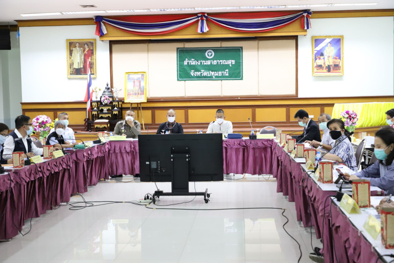 เมื่อเวลา 15.00 น.วันที่ 22 ก.ค.64 ที่ห้องประชุม1สำนักงานสาธารณสุขจังหวัดปทุมธานี ต.บางปรอก อ.เมือง จ.ปทุมธานี นายชัยวัฒน์ ชื่นโกสุม ผู้ว่าราชการจังหวัดปทุมธานี ประธานการประชุมคณะกรรมการโรคติดต่อจังหวัดปทุมธานีโดยมี นพ.สุรินทร์ สืบซึ้ง นายแพทย์สาธารณสุขจังหวัดปทุมธานี นายดรณ์ สมิตะเกษตริน ปลัดจังหวัดปทุมธานี พล.ต.ต.ดร.ชยุต มารยาทตร์ ผบก.ภ.จว.ปทุมธานี นายพิษณุ ประภาธนานันท์ นายอำเภอเมืองปทุมธานี นายรนัสถ์ชัย พุ่มเจริญ นายอำเภอลำลูกกา นายเวนิต วัฒนธำรง รองนายก อบจ.ปทุมธานี นายแพทย์ปรีดา ตั้งจิตเมธี รองผู้อำนวยการกลุ่มภารกิจด้านบริการปฐมภูมิ นางพรอัปสร นิลจินดา ประชาสัมพันธ์จังหวัดปทุมธานี และคณะกรรมการโรคติดต่อจังหวัดปทุมธานี เข้าประชุมเรื่อง ให้ปิดสถานที่เป็นการชั่วคราว และกำหนดมาตรการควบคุมป้องกันโรคเพิ่มเติม