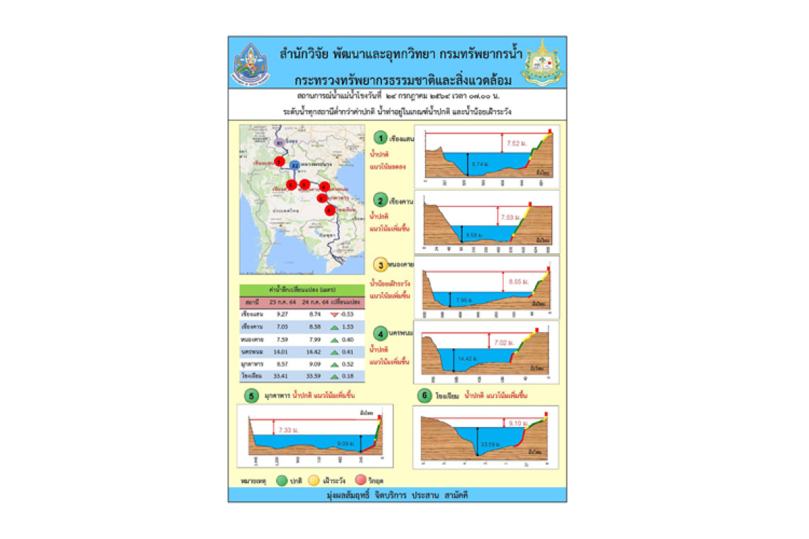 ด้วยอำเภอเชียงคาน ได้รับรายงานจากสถานีอุทกวิทยา ที่ ๓ เชียงคาน ว่า ทางเขื่อนไชยะบุรี สปป.ลาว ได้มีการปล่อยน้ำออกจากเขื่อนสืบเนื่องจากปริมาณน้ำมีความจุเกินปริมาณที่ต้องเก็บกักไว้สูงถึง ๑๐ เมตร จึงได้มีการปล่อยน้ำออกและอาจส่งผลกระทบต่อผู้อาศัยตามแนวริมน้ำและผู้ประกอบอาชีพประมง โดย ขณะนี้ ปริมาณน้ำโขง อยู่ที่ ๙.๕๐ เมตร ต่ำกว่าตลิ่ง ๘ เมตร จากการเฝ้าสังเกตการ ปริมาณน้ำเพิ่มขึ้น ๑๒ เซนติเมตร/ชั่วโมง และหากปริมาณน้ำยังเพิ่มขึ้นต่อเนื่อง คาดว่าปริมาณน้ำจะถึงระดับ ๑๖.๐๐ เมตร ประมาณ ๒๔.๐๐ นาฬิกาของคืนนี้ ซึ่งเป็นระดับที่ถือว่าต้องเฝ้าระวังพิเศษ ซึ่งมวลน้ำจะลงมาสู่นครพนมในวันเวลาถัดไป จึงขอให้ประชาชนที่อาศัยในบริเวณริมน้ำโขงเฝ้าระวังและติดตามสถานการณ์พร้อมทั้งเตรียมการขนย้ายสิ่งของขึ้นที่สูงเพื่อป้องกันน้ำท่วมฉับพลัน ซึ่งทางจังหวัดนครพนมได้เฝ้าระวังติดตามและเตรียมพร้อมให้การช่วยเหลือประชาชนที่ได้รับความเดือดร้อน ทั้งนี้ ประชาชนที่ได้รับความเดือดร้อนจากสถานการณ์ภัยสามารถแจ้งเหตุและขอความช่วยเหลือทางไลน์ “ปภ.รับแจ้งเหตุ1784” โดยเพิ่มเพื่อน Line ID : @1784DDPM และแอปพลิเคชัน “พ้นภัย” รวมถึงสายด่วนนิรภัย 1784 ตลอด 24 ชั่วโมง เพื่อประสานให้การช่วยเหลือโดยด่วนต่อไป
