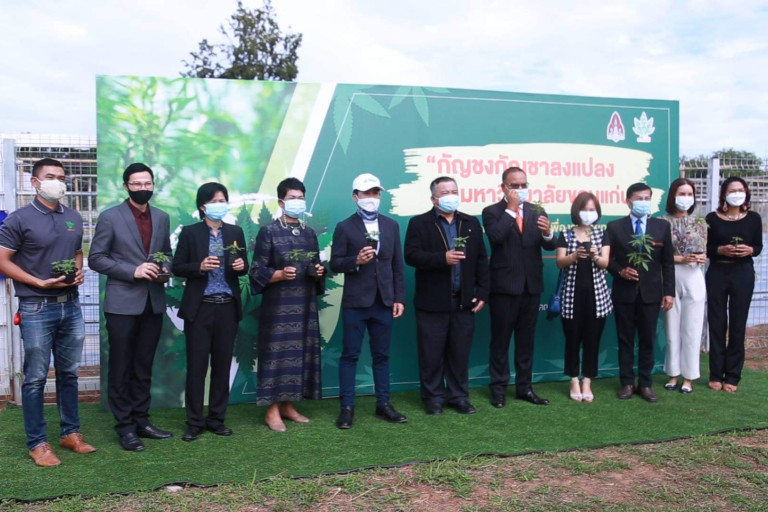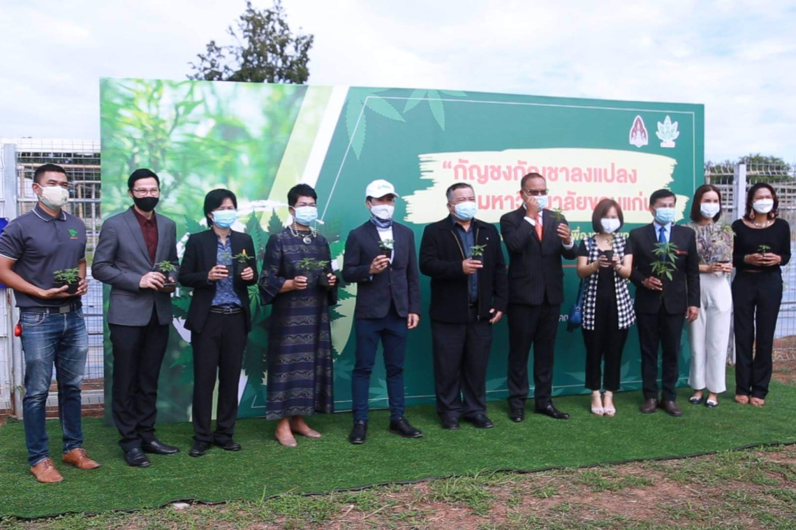 เมื่อเวลา 11.30 น. วันที่ 3 ส.ค.2564 ที่สำนักงานอธิการบดีมหาวิทยาลัยขอนแก่น หรือ มข. รศ.นพ.ชาญชัย  พานทองวิริยะกุล อธิการบดีมหาวิทยาลัยขอนแก่น หรือ มข. พร้อมด้วย ศ.ดร.มนต์ชัย   ดวงจินดา รองอธิการบดีมหาวิทยาลัยขอนแก่น,นายจุลภาส เครือโสภณ ,นายแดน  ปฐมวาณิชย์ ประธานบริษัท เอ็นอาร์ อินสแตนท์ โปรดิวซ์ จำกัด (มหาชน) และ บริษัท โกลเด้น ไตรแองเกิล เฮลท์ จำกัด ร่วมลงนามในบันทึกข้อตกลงความร่วมมือโครงการวิจัยและพัฒนาการปลูกและสกัดกัญชงกัญชา ของสถาบันวิจัยแคนนาบิสครบศาสตร์ โดยมีนักวิชาการด้านกัญชงและกัญชา รวมไปถึงผู้ที่ให้ความสนใจในการวิจัยกัญชงและกัญชา ร่วมเป็นสักขีพยานจำนวนมาก