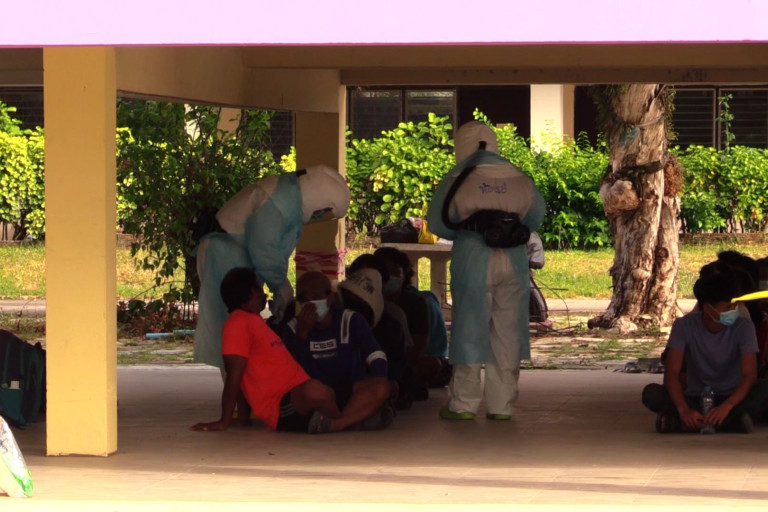 ผู้สื่อข่าวรายงานว่า บุคลากรทางการแพทย์ และแพทย์ โรงพยาบาลมหาราชนครศรีธรรมราช ต้องระดมพร้อมเครื่องมือเอ็กซเรย์ดิจิตอลเข้าตรวจประเมินคัดแยกผู้ป่วยติดเชื้อยืนยันในคลัสเตอร์ตลาดสดคูขวาง หรือตลาดสดเทศบาลนครนครศรีธรรมราช ซึ่งพบผู้ติดเชื้อในวันเดียวสูงถึง 61 รายจากการค้นหาเชิงรุก หลังจากทั้ง 61 รายถูกยืนยันการตรวจเชื้อทั้งหมดแล้วได้ถูกเคลื่อนย้ายมารวมกันที่โรงพยาบาลสนามโรงเรียนปากพูน อำเภอเมืองนครศรีธรรมราช หลังจากนั้นแพทย์จะต้องคัดกรองอาการผู้ป่วยพร้อมทั้งเอ็กซเรย์สภาพปอดผู้ป่วย โดยมีนายแพทย์พีรพัชร ไทยสยาม นายแพทย์ผู้เชี่ยวชาญเข้าตรวจและประเมินการหายใจจำแนกออกเป็น 3 ระดับคือระดับเขียว เหลือง และแดง โดยระดับเขียวและเริ่มเข้าโซนเหลืองจะต้องพักรักษาตัวในโรงพยาบาลสนาม ส่วนระดับปลายเหลืองและแดงจะต้องเข้ารักษาตัวในโรงพยาบาล โดยแพทย์ระบุว่าเป็นการจำแนกอาการเพื่อผ่อนคลายความตึงตัวของเตียงในโรงพยาบาล เนื่องจากไม่สามารถพูดได้ว่าโรงพยาบาลเต็มแล้ว และยังมีผู้ป่วยในระดับแดงเพิ่มขึ้นอย่างมาก