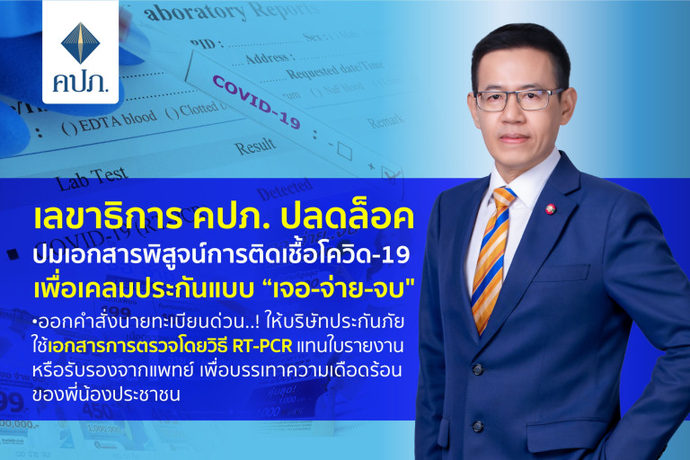 เลขาธิการ คปภ. ปลดล็อคปมเอกสารพิสูจน์การติดเชื้อโควิด-19 เพื่อเคลมประกันแบบ “เจอ-จ่าย-จบ"