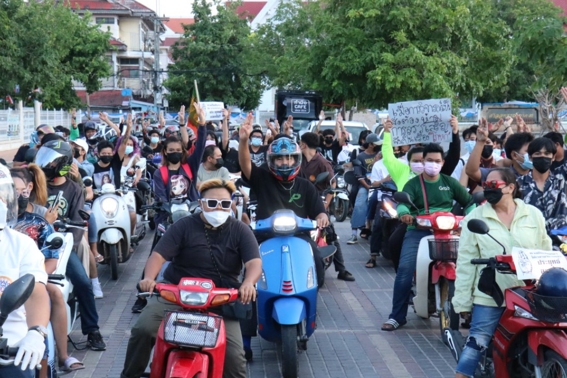 เมื่อเวลา 16.00 น. วันที่ 7 สิงหาคม ที่บริเวณหน้าลานอนุสาวรีย์ท้าวสุรนารี (ย่าโม) นครราชสีมา กลุ่มแนวร่วมโคราชปลดแอกและกลุ่มคนโคราชรักประชาธิปไตย นัดรวมพลผ่านกลุ่มเพจ Korat No เผด็จการ จัดขบวนคาร์ม็อบขับไล่รัฐบาล พล.อ.ประยุทธ์ จันทร์โอชา โดยมีรถยนต์ส่วนบุคคลและรถจักรยานยนต์ร่วม 500 คัน ได้สร้างสีสันติดป้ายเขียนข้อความโจมตีรัฐบาลบนยานพาหนะอย่างเผ็ดร้อน จากนั้นได้เคลื่อนขบวนจากถนนราชดำเนิน ไปตามเส้นทางในเขตเมือง พร้อมบีบแตรเป็นสัญลักษณ์สลับกับส่งเสียงขับไล่ “ประยุทธ์ ออกไป” และชูสามนิ้ว ปรากฏได้รับการตอบรับจากรถยนต์ที่สัญจรผ่านรวมทั้งประชาชนที่อยู่สองข้างทางส่วนหนึ่งได้ชูสามนิ้วตอบรับเป็นอย่างดีและมาสิ้นสุดที่สนามหน้าศาลากลางจังหวัดนครราชสีมา รวมระยะทางประมาณ 10 กิโลเมตร เพื่อทำกิจกรรมแสดงสัญลักษณ์เรียกร้องให้รัฐบาลพลเอกประยุทธ์ ฯ คืนอำนาจให้ประชาชน พร้อมจัดสรรวัคซีนทางเลือกให้ครอบคลุม รวมระยะทางประมาณ 10 กิโลเมตร โดยมี พ.ต.อ.กรกฎ โปชยะณิช ผกก.สภ.เมือง นครราชสีมา สนธิกำลังทั้งในและนอกเครื่องแบบจำนวนกว่า 150 นาย รักษาความสงบเรียบร้อยและป้องปรามการกระทำที่หมิ่นเหม่ข้อกฎหมาย ทั้งนี้ เมื่อเวลา 18.30 น. กลุ่มแนวร่วมเพจ Korat Movement ได้นัดรวมพลที่บริเวณหน้าสำนักงานตำรวจภูธรภาค 3 นครราชสีมา มวลชนส่วนใหญ่เป็นเยาวชนได้นำหุ่นฟางมาวางที่ประตูทางเข้า เพื่อจะจุดไฟเผาและนำป้ายเขียน “ขี้ข้า กะสัส เผด็จการ” มาแขวนบนรั้ว โดยมี พ.ต.อ.กรกฎ ผกก.สภ.เมือง พร้อมกำลังได้รีบจัดกำลังส่วนหนึ่งมาดูแลรักษาความปลอดภัย ได้ชี้แจงให้นำหุ่นฟางออกมาจากจุดทางเข้า เนื่องจากเป็นพื้นที่ของสถานที่ราชการ มวลชนได้ยอมนำหุ่นฟางมาวางบนถนนสรรพสิทธิ์ จากนั้นจุดไฟเผาหุ่นฟาง ส่วนหนึ่งนำพริกนำเกลือมาโรยและถุงสีแดงมาปาใส่กองไฟที่กำลังลุกไหม้พร้อมส่งเสียงสาปแช่ง “เผด็จการจงพินาศ ประชาธิปไตยจงเจริญ” และชูสามนิ้วเป็นสัญลักษณ์การต่อสู้ ก่อนกลับเจ้าหน้าที่ตำรวจได้นำกระดาษเอสี่ที่เขียนด่ารัฐบาลแล้วนำมาปิดทับเลขทะเบียนออก เพื่อจดบันทึกทำให้มวลชนไม่พอใจ ผกก.สภ.เมือง ต้องออกมารับรองความปลอดภัย อ้างเป็นการปฏิบัติตามหน้าที่ ยืนยันไม่มีการข่มขู่หรือกลั่นแกล้งอย่างแน่นอน หากมีให้มาแจ้งร้องทุกข์กับตน มวลชนจึงแยกย้ายเดินทางกลับ