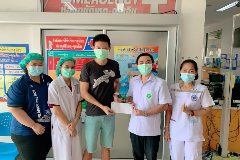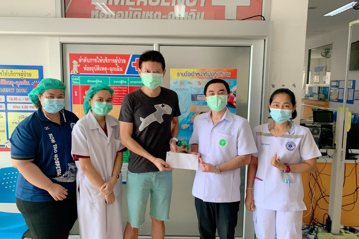เมื่อวันที่ 7 สิงหาคม ที่โรงพยาบาลเกาะเต่า อ.เกาะพะงัน จ.สุราษฎร์ธานี Mr.Choon Kiat Boon อายุ 47 ปี นักท่องเที่ยวสัญชาติสิงคโปร์ ซึ่งเป็นผู้ป่วยโควิด-19 รายที่ 7 ของเกาะเต่า ได้รักษาหายกลับบ้าน และน.พ.อาทิตย์ คำจันทร์ รองผู้อำนวยการโรงพยาบาลเกาะเต่า อนุญาตให้กลับบ้านได้ หลังจากรักษาตัวครบ 14 วัน ก่อนเดินทางกลับได้บริจาคเงิน ให้แก่โรงพยาบาลเกาะเต่า จำนวน 200,000 บาท เพื่อไว้ซื้อ อุปกรณ์ทางการแพทย์ไว้รักษาผู้ป่วย เพื่อเป็นการแสดงความ ขอบคุณและประทับใจที่บุคลากรทางการแพทย์ให้การดูแลรักษา เป็นอย่างดีจนร่างกายปกติดีทุกอย่าง