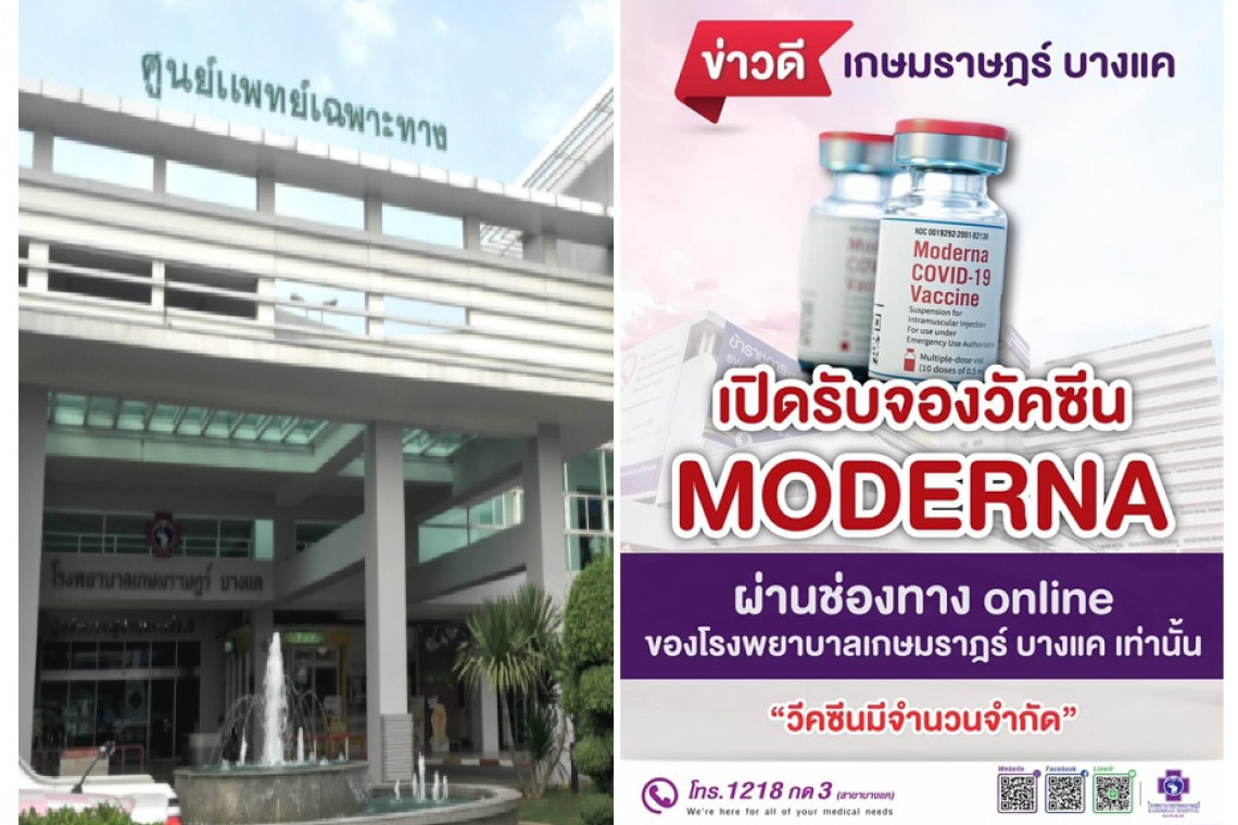 วันที่ 8 ส.ค. 2564 ผู้สื่อข่าวรายงาน ว่า โรงพยาบาลเกษมราษฎร์ บางแค ได้ประกาศเปิดรับจอง วัคซีนโมเดอร์นาผ่านช่องทาง online โดยลงทะเบียนผ่าน link https://forms.gle/goESUxceJqCNza3i9 โปรดตรวจสอบข้อมูลให้ถูกต้องและครบถ้วน กรณีกรอกข้อมูลไม่ครบทางโรงพยาบาลขออนุญาติตัดสิทธิ์