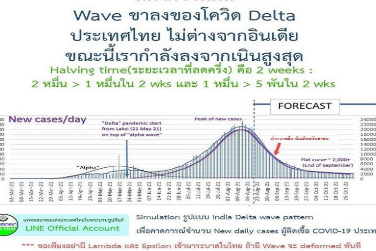 หมอกัมปนาทคาดน่าจะผ่านจุดพีค 2.3 หมื่นไปแล้ว เริ่มกลับหัวลง ด้วยหลายปัจจัยร่วม แต่ระบุเมื่อขาขึ้นใช้เวลา 2-3 เดือน ขาลงก็ต้องใช้เวลาประมาณนี้เช่นกัน ยังต้องมีติดเพิ่มและตายเพิ่มเป็นแสนและเป็นพัน อันเป็นธรรมชาติของโรคที่หลายประเทศผ่านความโหดร้ายนี้มาแล้ว ไทยยังต้องอยู่อย่างนี้ไปอีกพักใหญ่ๆ แต่เริ่มมีสัญญาณรำไรให้เห็น ยังต้องระวังตัวให้เคร่งครัด เปรียบโควิดเหมือนฝน ต้องป้องกันไม่ให้ตัวเปียก ชี้เกมนี้ไวรัสเป็นตัวกำหนด นพ.กัมปนาท พรยศไกร ศัลยแพทย์ระบบทางเดินปัสสาวะ เจ้าของเพจ Sarikahappymen โพสต์ข้อความผ่านเฟซบุ๊กระบุ "อัพเดตข่าวดีเล็กๆ ในวันที่ยอด Covid ไทยครบ 1 ล้าน เมื่อเช้าหลายคนคงเห็นตัวเลขผู้ติดเชื้อใหม่และหลายเพจก็ลงสรุปให้ว่าถึงหนึ่งล้านแล้ว ก็คงขวัญหนีดีฝ่อกันไปและคิดว่ามันจะยังไงต่อนะครับ หลายคนคงจำได้ว่าเมื่อ 2 อาทิตย์ก่อนที่ผมเคยเขียนไว้เรากำลังจะมาถึงจุดพีคของเวฟแล้วใช่ไหมครับ ที่ว่าให้เกาะเสาเรือนกันให้ดี ๆ จากนั้นผ่านมา 2 อาทิตย์ ผมว่าเราเริ่มจะเห็นข่าวดีบ้างแล้วหละครับ จากตัวเลขยอดผู้ติดเชื้อล่าสุด 2 สัปดาห์ รวมกับสถิติในหลายประเทศ และธรรมชาติของโรค เมื่อเอามาทำกราฟเทียบ ผมว่าเราน่าจะผ่านจุดพีคของเวฟเดลต้านี้ไปแล้วหละครับที่ 23,000 เมื่อสัปดาห์ก่อนและจากนี้กราฟมันก็จะเริ่มสัญญาณกลับหัวลงแล้วครับ หลายคนก็คงสงสัยว่าลงจากอะไร อันนี้ก็ต้องบอกว่าจากหลายๆ ปัจจัยร่วมกันครับ ตั้งแต่ 1.ธรรมชาติของโรค คือทุกอย่างในโลกนี้มันไม่มีอะไรสูงสุดตลอดกาลหรอกครับ มีพีคก็มีแผ่ว โรคระบาดก็เช่นกันมันก็จะบุกเราเป็นระลอก มีช่วงหนัก ช่วงเบา ดูอย่างอินเดีย อินโด ที่ยอดติดวันละ 4 แสน ตายกันเต็มแม่น้ำคงคา พอถึงเวลามันจะซา ยอดก็ลดลงไปดื้อ ๆ นั่นแหละครับ 2.การฉีดวัคซีน ถึงเห็นว่าระบบจัดสรรจะมั่วซั่วขนาดไหน แต่สุดท้ายเห็นเงียบๆ ฉีดเพียบนะครับ คือตอนนี้เรามีคนไทยที่ได้วัคซีนเข็มแรกกันไปแล้วถึง 18 ล้านคน หรือก็ 1 ใน 4 ของประเทศแล้ว และก็ยังฉีดเพิ่มกันทุกวันเฉลี่ยวันละ 4-5 แสนคน คือก็ฉีดข้ามหัวเราไปมานี่แหละครับ ซึ่งแต่ละคนภูมิก็อาจขึ้นสูงบ้างต่ำบ้างตามแต่ละชนิดหรือจำนวนโดสที่ได้ แต่มันก็ขึ้น ไม่ใช่ถึงขนาดฉีดน้ำเปล่านะครับ 3.ยอดคนติด ตอนนี้เรามียอดคนติดเชื้อล้านคน ก็เท่ากับคนกลุ่มนี้ก็จะมีภูมิธรรมชาติอยู่แล้วล้านนึง และยิ่งสมมติที่เราบอกกันว่าตรวจน้อยกว่าความเป็นจริง 10 เท่า ก็แปลว่าข้างนอกก็ต้องมีคนติดเชื้อแบบไม่มีอาการอยู่ 10-20 ล้านคน ก็เท่ากับคนกลุ่มนี้ก็ต้องเริ่มมีภูมิด้วยเช่นกันนั่นแ