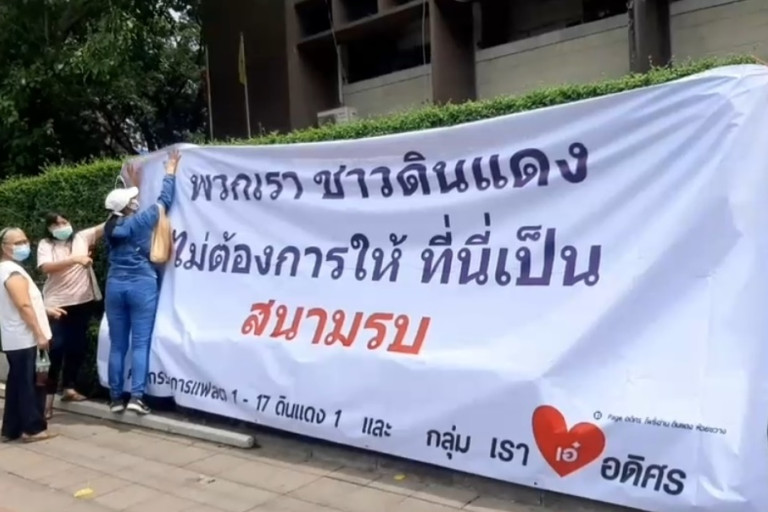 เมื่อวันที่ 21 ส.ค.64 นายประสงค์ หอมสนั่น กรรมการชุมชนดินแดง พร้อมชาวแฟลตดินแดง ร่วมกันติดป้ายข้อความ “เรามีเด็ก คนชรา ผู้ป่วย โปรดช่วยคืนความสงบ ให้พวกเราด้วย“ เพื่อต้องการให้เจ้าหน้าที่ลดความรุนแรงในการใช้แก๊สน้ำตา และกระสุนยาง ในการควบคุมสถานการณ์ชุมนุม ใกล้พื้นที่ชุมชนพักอาศัย