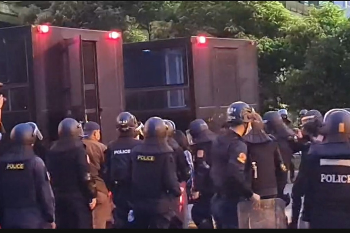 ซึ่งในช่วง 18.00 น. ทางเจ้าหน้าที่ตำรวจได้กดดันผู้ชุมนุมให้ถอยร่น ด้วยการฉีดน้ำแรงดันสูง ระดมยิงแก๊สน้ำตา กระสุนยาง และเจ้าหน้าที่ได้ปรับยุทธวิธีด้วยการตลบหลังผู้ชุมนุมให้สลายตัว จนผู้ชุมนุมแตกตื่น ขับจักรยานยนต์หนีออกจากพื้นที่ จึงทำให้ผู้ชุมนุมบางส่วนได้รับบาดเจ็บ ส่วนอีกจำนวนหนึ่งถูกควบคุมตัวไปดำเนินคดีต่อไป