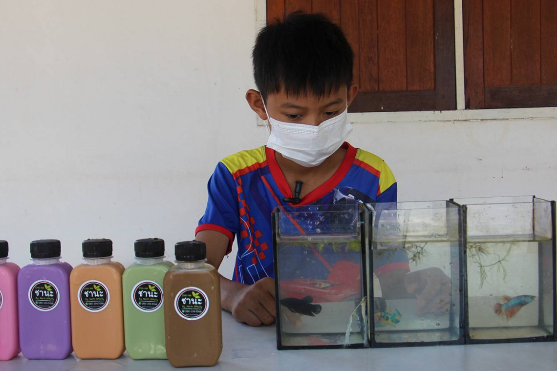 ด.ช.ชวิศ กล่าวอีกว่า ส่วนชานมหลากสีที่เอามาไลฟ์สดขายเพิ่มนั้นไปรับมาจากคุณป้าทำให้ขายขวดละ 10 บาท ตัวเองได้กำไรจากส่วนต่าง ขวดละ 2 บาท ส่วนลูกค้าที่อยากอุดหนุนสามารถเข้าไปที่เพจสวนผึ้ง มีบอกไว้ อุดหนุนได้ทุกวัน โดยปลากัดจะมีหลายพันธุ์ ได้แก่ปลากัดหม้อขายตัวละ 40 บาท ปลากัดพันธุ์โค่ยนีโม่ ตัวละ 300 บาท ลักษณะสีสันสดใสเป็นปลาแฟนซีมีหลายสีอยู่ในตัวเดียวกัน และพันธุ์ปลากัดแฟนซีขายตัวละ 50 -100 บาท โตขึ้นมีความใฝ่ฝันอยากเป็นนักฟุตบอล เมื่อก่อนหน้านี้เคยฝึกซ้อมอยู่ด้วย แต่มาหยุดช่วงโควิด มีทีมฟุตบอลในดวงใจคือ ราชบุรีมิตรผลเอฟซี