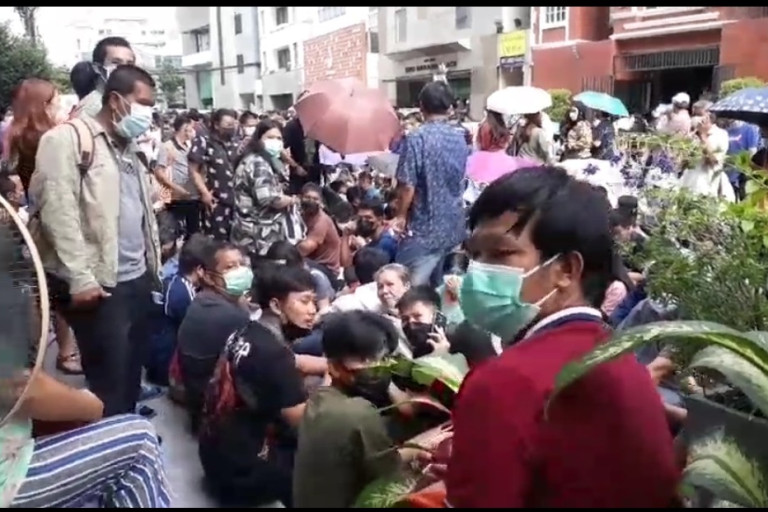 วันนี้(6 ก.ย.64) ผู้สื่อข่าวรายงานว่า ได้เกิดเหตุการณ์อบหม่านจากการที่มีประชาชนกว่า 200 รายที่ซื้อประกันโควิด เจอจ่ายจบไว้กับบริษัทประกันภัยแห่งหนึ่ง ย่านรัขดาฯ ได้รวมตัวกันเดินทางมาทวงถามเงินสินไหมทดแทนที่ต้องได้รับตามสัญญากรมธรรม์ประกันโควิดที่แต่ละรายได้ซื้อไว้ หลังจากต่างได้ติดเชื้อโควิดและทำการรักษาหายแล้ว จึงมาเบิกกับบริษัทประกัน แต่ปรากฏว่ามีการจ่ายล่าช้าไม่เป็นไปตามชื่อกรมธรรม์"เจอจ่ายจบ" ตามที่โฆษณาหรือตามสโลแกนที่ตั้งไว้ว่าเจอจ่ายจบแต่อย่างใด หลังจากได้เดินทางมายื่นเรื่องนานนับเดือนแล้วปรากฏว่ายังไม่ได้เงินกัน ด้วยเหตุนี้จึงเดินทางกันมาจำนวนมากเพื่อทวงถามที่สำนักงานใหญ่ของบริษัทในซอยรัชดาภิเษก 26