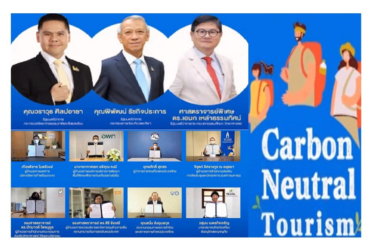 วันที่ 10 กันยายน 2564 ผู้สื่อข่าวรายงาน ว่า นายวราวุธ ศิลปอาชา รัฐมนตรีว่าการกระทรวงทรัพยากรธรรมชาติและสิ่งแวดล้อม ศาสตราจารย์พิเศษ ดร.เอนก เหล่าธรรมทัศน์ รัฐมนตรีว่าการกระทรวงการอุดมศึกษา วิทยาศาสตร์ วิจัยและนวัตกรรม และนายพิพัฒน์ รัชกิจประการ รัฐมนตรีว่าการกระทรวงการท่องเที่ยวและกีฬา ร่วมเป็นประธานการลงนามบันทึกความตกลงความร่วมมือขับเคลื่อนประเทศไทยมุ่งสู่การท่องเที่ยวที่มีการปล่อยคาร์บอนสุทธิเป็นศูนย์หรือการท่องเที่ยวแบบคาร์บอนนิวทรัล (Carbon Neutral Tourism) สำหรับโครงการคาร์บอนบาลานซ์ (Carbon Balance Scheme) เกิดขึ้นภายใต้ความร่วมมือจาก 8 องค์กรพันธมิตร ประกอบด้วย องค์การบริหารการพัฒนาพื้นที่พิเศษเพื่อการท่องเที่ยวอย่างยั่งยืน (อพท.) การท่องเที่ยวแห่งประเทศไทย (ททท.) สำนักงานส่งเสริมการจัดประชุมและนิทรรศการ (สสปน.) คณะกรรมการส่งเสริมวิทยาศาสตร์ วิจัย และนวัตกรรม (สกสว.) หอการค้าไทยและสภาหอการค้าแห่งประเทศไทย สมาคมไทยท่องเที่ยวเชิงอนุรักษ์และผจญภัย (สทอ.) หน่วยบริหารและจัดการทุนด้านการเพิ่มความสามารถในการแข่งขันของประเทศ (บพข.) และองค์การบริหารจัดการก๊าซเรือนกระจก (องค์การมหาชน) (อบก.) เพื่อเสริมสร้างศักยภาพด้านการจัดงานอีเว้นท์และจัดการท่องเที่ยวที่มีการปล่อยคาร์บอนสุทธิเป็นศูนย์หรือการท่องเที่ยวแบบคาร์บอนนิวทรัล (Carbon Neutral Tourism) ให้กับหน่วยงาน ทั้งภาครัฐภาคเอกชน ผู้ประกอบการ ชุมชนท่องเที่ยว นักเดินทาง นักท่องเที่ยว และแหล่งท่องเที่ยว เพื่อบรรเทาผลกระทบทางลบต่อโลกจากการเปลี่ยนแปลงสภาพภูมิอากาศ และช่วยลดโลกร้อน สำหรับบทบาททั้ง 8 หน่วยงานจะได้ร่วมกันดำเนินงานแบบบูรณาการเพื่อทำภารกิจให้สำเร็จ ภายใต้โครงการ คาร์บอนบาลานซ์ คือ 1. ร่วมกันพัฒนาองค์ความรู้ที่เกี่ยวข้องกับการท่องเที่ยวคาร์บอนสุทธิเป็นศูนย์ที่เหมาะสมกับบริบทของภาคธุรกิจท่องเที่ยวไทย 2. สนับสนุนให้เกิดการจัดการท่องเที่ยวคาร์บอนสุทธิเป็นศูนย์ ผลักดันให้เกิดเส้นทางท่องเที่ยว กิจกรรม บริการ และนวัตกรรม ที่จัดการด้วยแนวคิดนี้อย่างเป็นรูปธรรมในอุตสาหกรรมท่องเที่ยวและการจัดงานไทย 3.ส่งเสริมเครือข่ายผู้ประกอบการในห่วงโซ่อุปทานการท่องเที่ยวไทยและการจัดงานไมซ์ให้มีการนำแนวทางท่องเที่ยวคาร์บอนสุทธิเป็นศูนย์ไปใช้ในการจัดการและเข้าถึงแนวทางการออกแบบและสามารถชดเชยคาร์บอนได้โดยสะดวก 4. ร่วมดำเนินการเผยแพร่ประชาสัมพันธ์ รณรงค์ สร้างความตระหนักรู้ด้านการเปลี่ยนแปลงสภาพภูมิอากาศ โดย นายพิพัฒน์ รัชกิจประการ รัฐมนตรีว่าการกระทรวงการท่องเท