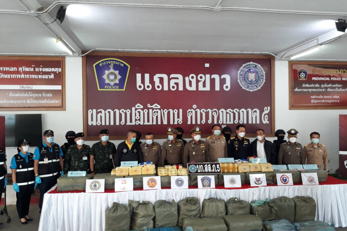 วันที่ 10 กันยายน 2564 ผู้สื่อข่าวรายงานว่า ที่ตำรวจภูธรภาค 5 พล.ต.ต.วันชัย สุวรรณศิริเขต ผู้ทรงคุณวุฒิพิเศษ สำนักงานตำรวจแห่งชาติ, พล.ต.ท.ประจวบ วงศ์สุข ผบช.ภ.5 มทน.3/ผบ.ศป.บส.ชน., ผบ.กกล.ผาเมือง, ผบ.พล.ร.7 ฝ่ายปกครอง ผู้ว่าราชการจังหวัดเชียงราย สำนักงาน ป.ป.ส.ภาค 5 ผอ.ส่วนอำนวยการบังคับใช้กฎหมาย ป.ป.ส.ภาค 5 แถลงผลการจับกุมคดียาเสพติดรายสำคัญ ผู้ต้องหา 5 คน นายชาญชัย แซ่เล่า อายุ 25 ปี นายวันชัย รุ่งมณีโชค อายุ 25 ปี นายสมวงศ์ เล่าสิงห์ปัญญาชาติ อายุ 21 ปี นายสันติ แซ่ลี อายุ 24 ปี ของกลาง ยาบ้าประมาณ 5,900,000 เม็ด รถยนต์ 4 คัน โดยแจ้งข้อกล่าวหา ร่วมกันมียาเสพติดให้โทษประเภท 1 (เมทแอมเฟตามีนหรือยาบ้า) ไว้ในความครอบครองเพื่อจำหน่ายโดยผิดกฎหมาย
