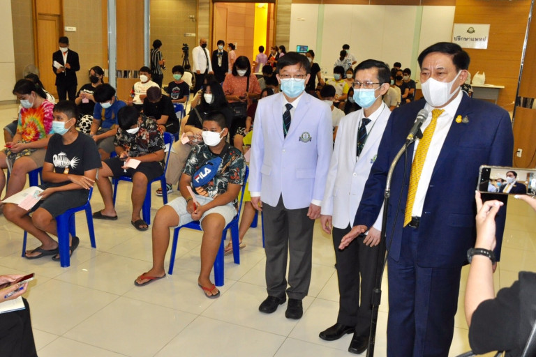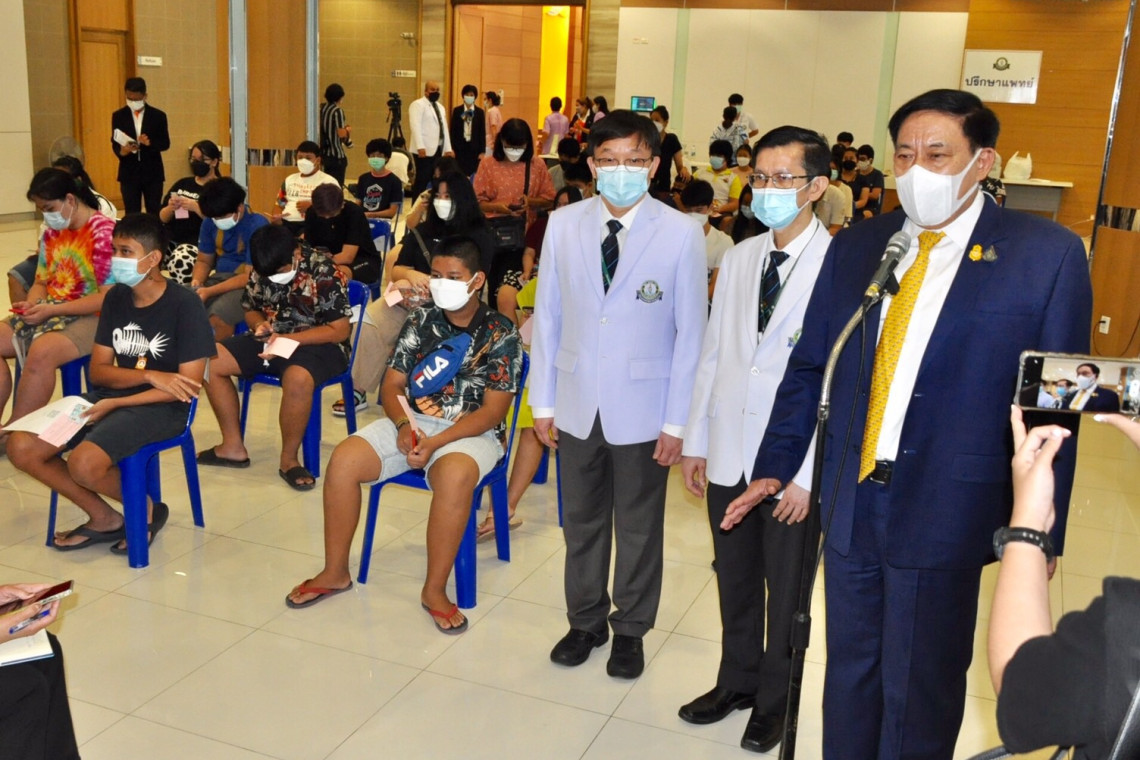 เมื่อเวลา 11.30 น. วันที่ 21 ก.ย.64 พล.ต.อ.อัศวิน ขวัญเมือง ผู้ว่าราชการกรุงเทพมหานคร ตรวจเยี่ยมการฉีดวัคซีนไฟเซอร์ ให้กับเด็กอายุ 12-18 ปี ที่มีโรคในกลุ่ม 7 โรคกลุ่มเสี่ยง ที่อาศัยอยู่ในกรุงเทพมหานคร ซึ่งรวมทั้งเด็กนักเรียนในสังกัดกทม. และสังกัดอื่นๆ แบ่งเป็นฉีดเข็มที่ 1 จำนวน 800 โดส และฉีดเข็มที่ 2 จำนวน 700 โดส ณ อาคารทีปังกรรัศมีโชติ ชั้น 6 วชิรพยาบาล เขตดุสิต