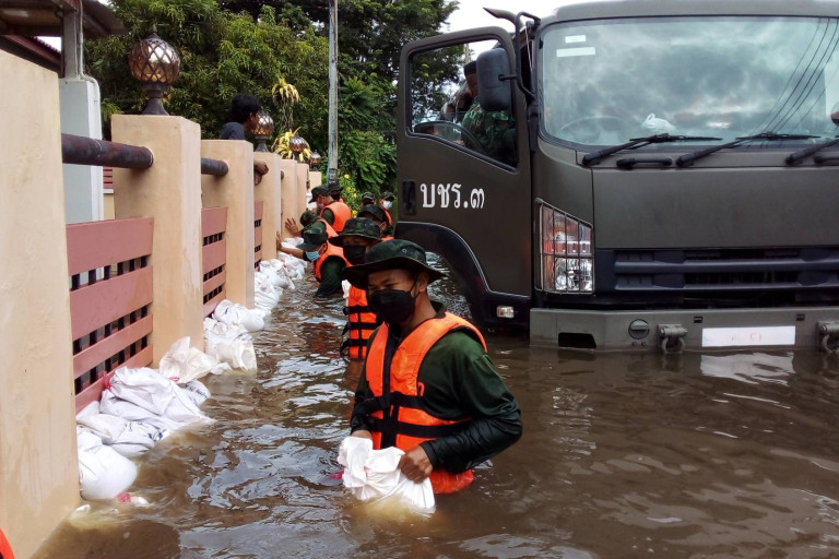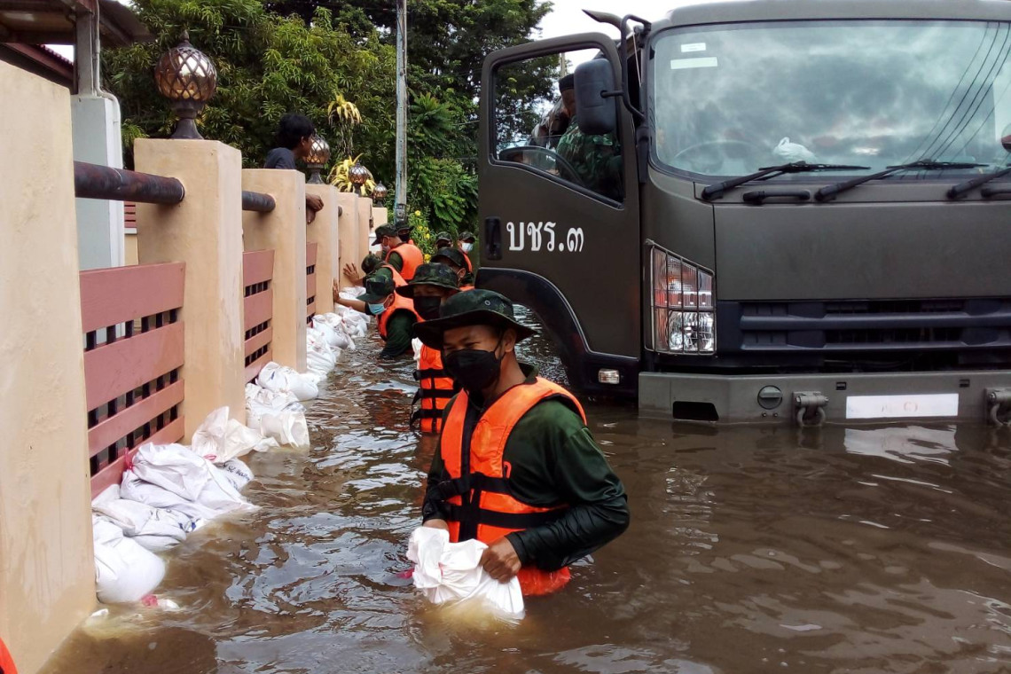 หลังจาก หมอทหาร พยาบาล และทหารเสนารักษ์ ลงเรือตรวจสุขภาพแจกจ่ายยาสามัญประจำบ้าน รักษาอาการที่มากับน้ำท่วมให้กับพี่น้องประชาชนในอำเภอศรีสำโรง จนเป็นที่ชื่นชมในโลกโซเชียล นั้น เมื่อวันที่ 25 ก.ย.64 กองพันเสนารักษ์ที่ 23 กองบัญชาการช่วยรบที่ 3 จัดกำลังพลชุดบรรเทาสาธารณภัย ออกช่วยเหลือเคลื่อนย้ายผู้เสียชีวิตออกจาก โรงพยาบาลสุโขทัย เพื่อไปทำการพิธีฌาปนกิจ ณ วัดกําแพงงาม ตำบลบ้านกล้วย อำเภอเมือง จังหวัดสุโขทัย เนื่องจากมวลน้ำได้หลากเข้าท่วมตัวเมืองสุโขทัยธานี และไหลทะลักเข้าท่วมภายในโรงพยาบาลสุโขทัย ทำให้การเคลื่อนย้ายเป็นไปด้วยความยากลำบาก รวมถึง กองพันเสนารักษ์ที่ 23 กองบัญชาการช่วยรบที่ 3 ได้ทำการช่วยเหลือผู้ป่วยที่พึ่งทำการคลอดบุตร เดินทางออกจากโรงพยาบาลสุโขทัย เพื่อกลับไปยังบ้านพักอาศัยในพื้นที่อำเภอเมืองสุโขทัย โดยใช้เรือและรถบรรทุกขนาดใหญ่ในการรับ - ส่งผู้ป่วย และผู้ที่ต้องการเดินทางมารักษาและกลับออกจากโรงพยาบาลสุโขทัย ให้เกิดความสะดวกและความปลอดภัยมากที่สุด รวมทั้งได้ทำการช่วยเหลือพี่น้องประชาชนที่ประสบอุทกภัยในพื้นที่อำเภอเมืองสุโขทัย จังหวัดสุโขทัย ด้วยการจัดรถรับ - ส่งประชาชนจากสะพานพระร่วง เดินทางไปยังโรงพยาบาลสุโขทัย รวมถึงดำเนินการจัดรถรับ - ส่งผู้ป่วยจากโรงพยาบาลรวมแพทย์ สุโขทัย ไปทำการรักษาที่โรงพยาบาลสุโขทัย อำเภอเมือง จังหวัดสุโขทัย ด้วยความเรียบร้อยและปลอดภัย ทั้งนี้ โรงพยาบาลสุโขทัยต้องใช้แผ่นเหล็กทำทางเข้า และใช้เรือจากเจ้าหน้าที่กู้ภัย และรถขนาดใหญ่ของหน่วยทหาร รับ - ส่งผู้ป่วยและผู้มาใช้บริการ และด้วยเนื่องจากน้ำท่วมถนนสูงต่อเนื่อง และมีประชาชนขอความช่วยเหลือเคลื่อนย้ายผู้สูงอายุ ผู้ป่วยออกจากบ้าน ละแวกใกล้เคียงวัดพายชุมพล หลายราย..เจ้าหน้าที่ทหารจึงต้องเร่งกระจายกำลังและยุทโธปกรณ์ยานพาหนะในการช่วยเหลือให้รวดเร็วและทันเวลามากที่สุด สถานการณ์น้ำที่ อำเภอศรีสำโรงและอ่างเก็บน้ำแม่รำพัน จังหวัดสุโขทัย ล้นสปริลเวย์ เอ่อล้นเข้าพื้นที่ อำเภอเมืองสุโขทัย บริเวณพื้นที่ ตำบลบ้านกล้วยและ ตำบลธานี อำเภอเมือง จังหวัดสุโขทัย มวลน้ำยังขยายวงกว้างและท่วมสูงหลายจุด ตลอดเส้นทางจากสะพานพระร่วงจนถึงวิทยาลัยเทคนิคสุโขทัย ระดับน้ำสูง 20-50 เซนติเมตร ทำให้การเดินทางไปอุทยานประวัติศาสตร์ ตำบลเมืองเก่า และ อำเภอบ้านด่านลานหอย พร้อมทั้งการเดินทางไป จังหวัดตาก เป็นอัมพาต ต้องอ้อมไปใช้ถนนสาย สุโขทัย-กำแพงเพชร แทน แล้วเข้าถนนอาสาตรงข้ามกับสถาบันการพลศึก