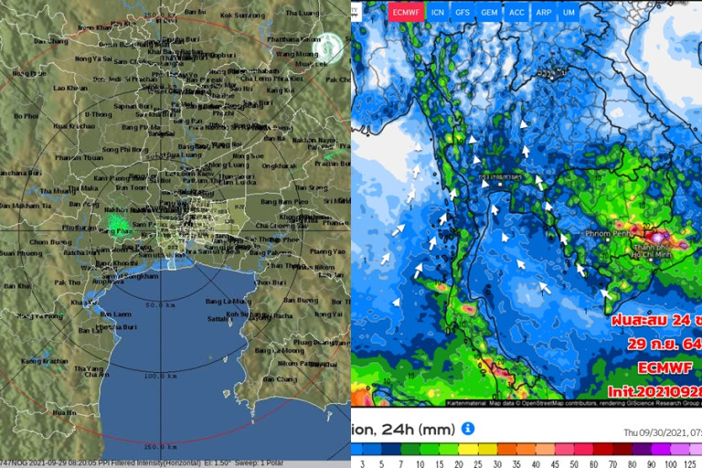 สำนักการระบายน้ำกทม. รายงานเมื่อวันที่ 29 ก.ย.64 เวลา 08.00 น. กรุงเทพมหานคร ฝนเล็กน้อยบางพื้นที่ / อุณหภูมิที่สำนักการระบายน้ำ 28 องศาเซลเซียส ความชื้นสัมพัทธ์ 88% กรุงเทพมหานคร รายงาน พื้นที่กทม.และปริมณฑล : มีฝนฟ้าคะนองร้อยละ 30 ของพื้นที่ อุณหภูมิต่ำสุด 25-26 องศาเซลเซียส อุณหภูมิสูงสุด 33-34 องศาเซลเซียส ลมตะวันออก ความเร็ว 10-20 กม./ชม. เพจสมควร ต้นจาน กรมอุตุนิยมวิทยา โพสต์ผ่านเฟซบุ๊กระบุ ภาพถ่ายดาวเทียมแบบเคลื่อนไหว เช้าวันนี้ (29/9/64) : เมฆฝนมีน้อยลง กลุ่มเมฆฝนเคลื่อนตัวจากตะวันออกไปทางตะวันตกตามแนวลม 29 -30 ก.ย. 64 มรสุมตะวันตกเฉียงใต้ พัดปกคลุมมีกำลังอ่อนลง ทำให้บ้านเรายังมีฝนเกิดขึ้นได้บางแห่ง 1-8 ต.ค. มรสุมมีกำลังแรงขึ้น ทำให้มีฝนเพิ่มขึ้น โดยเฉพาะตั้งแต่วันที่ 6 -8 ต.ค. 64 อาจมีฝนหนักบางแห่งทางภาคอีสานตอนล่าง ภาคตะวันออก คลื่นลมมีกำลังอ่อนลงด้วย และยังต้องติดตามหย่อมความกดอากาศต่ำบริเวณทะเลจีนใต้ ช่วงวันที่ 7 -9 ต.ค. 64 (ข้อมูลนี้อาจจะมีการเปลี่ยนแปลงได้ตามข้อมูลที่นำเข้าใหม่ ใช้เป็นแนวทางเพื่อประกอบการตัดสินใจ)