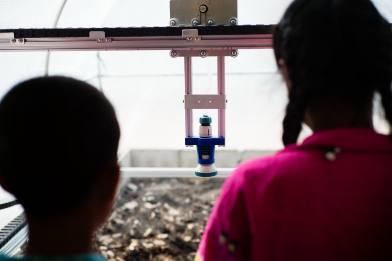 ความท้าทายของนักศึกษาวิศวกรรมเครื่องกลกลุ่มนี้ คือการทำงานแบบสหสาขาวิทยาการ ที่ต้องนำศาสตร์ของวิศวกรรมเครื่องกล ในการสร้างอุปกรณ์ที่มีทั้งชุดควบคุมรอกและชุดควบคุมหัวฝักบัว เพื่อไปวางครอบลงบนแปลงปลูกผักขนาด 1.5x2.5 เมตร ศาสตร์ด้านวิศวกรรมไฟฟ้าหรืออิเล็กทรอนิกส์ ที่ต้องนำความรู้มาสร้างแผงควบคุมและสั่งการทำงานของชุดเครื่องกล ที่จะรับคำสั่งต่างๆ มาแปลงเป็นสัญญาณไฟฟ้าเพื่อสั่งการกับชุดเครื่องกลได้อย่างถูกต้อง และศาสตร์ด้านวิศวกรรมคอมพิวเตอร์ ในการสร้างโปรแกรมควบคุม ในลักษณะของ ชุดคำสั่ง (Code) ที่ “ง่ายต่อการเรียนรู้ของผู้เรียน” นอกจากนั้น ยังบูรณาการข้อมูลด้านด้านอื่นๆ ทั้งเรื่องการเกษตร เช่น ความสูงกับปริมาณน้ำที่ต้องให้กับผักแต่ละชนิด และสาระการเรียนรู้ในแต่ละวิชาที่เกี่ยวข้องเข้ามาร่วมในการออกแบบ
