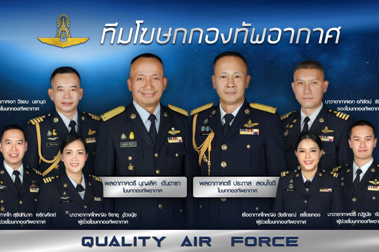 โดยมีคณะทำงาน ประกอบด้วย รองโฆษกกองทัพอากาศ 2 คน ได้แก่ นาวาอากาศเอก อภิรัตน์ รังสิมาการ ผู้อำนวยการกองประชาสัมพันธ์ สำนักกิจการพลเรือนและประชาสัมพันธ์ กรมกิจการพลเรือนทหารอากาศ และ นาวาอากาศเอก วีรชน นรานุต นายทหารกิจการพลเรือนทหารอากาศอาวุโส กรมกิจการพลเรือนทหารอากาศ และผู้ดำเนินรายการโทรทัศน์-วิทยุ