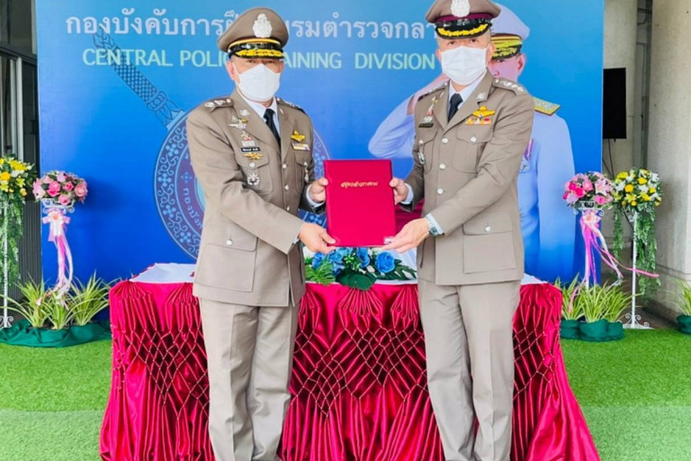 วันที่ 4 ต.ค.64 ที่ลานหน้ากองบังคับการฝึกอบรมตำรวจกลาง (บก.ฝรก.) ตำบล ศาลายา อำเภอพุทธมณฑล จังหวัดนครปฐม ได้จัดพิธีรับ-ส่งมอบหน้าที่ ผู้บังคับการฝึกอบรมตำรวจกลาง (ผบก.ฝรก.)โดยมี พล.ต.ต.ชัชปัณฑกาณฑ์ คล้ายคลึง เข้ารับมอบหน้าที่ ผู้บังคับการฝึกอบรมตำรวจกลาง (ผบก. ฝรก.)คนใหม่ จาก พ.ต.อ.อภิชัย ดุษฎีพฤฒิพันธุ์ รอง ผบก.ฝรก.เป็น รอง ผบก.อาวุโสอันดับ 1 เป็นผู้รับมอบหน้าที่จาก ผบก.คนเก่าที่เกษียณอายุราชการในปี 2564 พร้อมด้วย พ.ต.อ.อมรฤทธิ์ คชกูล รอง ผบก.ฝรก.,พ.ต.อ. อดุลย์ เทพิกัน รอง ผบก.ฝรก.รวมทั้งข้าราชการตำรวจในสังกัด เข้าร่วมพิธีฯและร่วมให้การต้อนรับ ผบก.ฝรก.คนใหม่ อย่างพร้อมเพรียง