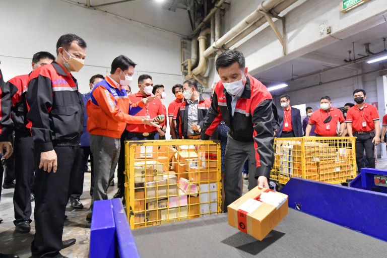 นายชัยวุฒิ ธนาคมานุสรณ์ รัฐมนตรีว่าการกระทรวงดิจิทัลเพื่อเศรษฐกิจและสังคม หรือดีอีเอส เผยว่า ไปรษณีย์ไทยในฐานะหน่วยงานขนส่งหลักของประเทศ ที่อยู่ภายใต้การกำกับดูแลของกระทรวงดิจิทัลเพื่อเศรษฐกิจและสังคม ได้ดำเนินภารกิจด้านการสื่อสารและการขนส่งให้ประชาชนทั่วประเทศมาอย่างต่อเนื่อง โดยเฉพาะในช่วงสถานการณ์วิกฤตที่ได้แสดงให้เห็นอย่างชัดเจนว่าไปรษณีย์ไทยมีบทบาทและหน้าที่สำคัญ ในการอำนวยความสะดวกให้กับทุกภาคส่วน ไม่ว่าจะเป็นการช่วยเหลือภาคสาธารณสุข การขับเคลื่อนภาคเศรษฐกิจ การบรรเทาภาวะวิกฤตให้กับองค์กรและชุมชน นอกจากนี้ เพื่อยกระดับไปรษณีย์ไทย ให้ตอบโจทย์มิติทางเศรษฐกิจและสังคมมากได้ยิ่งขึ้น ผ่านแนวทางสำคัญ ได้แก่ การขับเคลื่อนองค์กรด้วยดิจิทัล หรือ Tech Post การขับเคลื่อนเศรษฐกิจและสังคม การให้บริการครบวงจร และการรักษาคุณภาพบริการ โดยไปรษณีย์ไทยพร้อมขานรับนโยบาย เดินหน้าเพิ่มศักยภาพการคัดแยกพัสดุด้วยการติดตั้งเครื่องคัดแยกแบบ Cross Belt Sorter เพิ่มเพื่อรองรับปริมาณสิ่งของจากกลุ่มธุรกิจ e-Commerce ณ ศูนย์ไปรษณีย์ด่วนพิเศษกรุงเทพฯ (EMS) ซึ่งสามารถคัดแยกสิ่งของได้กว่า 7,200,000 ชิ้นต่อเดือน พร้อมทั้งเพิ่มความสะดวกให้กับผู้ใช้บริการด้วยเครื่องให้บริการรับฝากอัตโนมัติ (APM) ให้ผู้ใช้บริการสามารถทำการฝากส่งสิ่งของด้วยตนเองได้ง่ายๆ ตลอด 24 ชั่วโมง โดยสิ่งที่สำคัญที่สุดคือ การรักษาคุณภาพบริการ ทั้งความรวดเร็ว ความแม่นยำ และ ความปลอดภัย เพื่อเป็นผู้ให้บริการสื่อสารและขนส่งของชาติที่คนไทยจะไว้วางใจได้เสมอ ดร.ดนันท์ สุภัทรพันธุ์ กรรมการผู้จัดการใหญ่ บริษัท ไปรษณีย์ไทย จำกัด กล่าวว่า ไปรษณีย์ไทยได้เดินหน้าพัฒนาการดำเนินงานและการบริการมาอย่างต่อเนื่อง โดยล่าสุดไปรษณีย์ไทยได้เดินหน้าเพิ่มศักยภาพการคัดแยกพัสดุ ด้วยการติดตั้งเครื่องคัดแยกแบบ Cross Belt Sorter เพิ่ม เพื่อรองรับปริมาณสิ่งของจากกลุ่มธุรกิจ e-Commerce ณ ศูนย์ไปรษณีย์ด่วนพิเศษกรุงเทพฯ (EMS) ซึ่งสามารถคัดแยกสิ่งของได้กว่า 7,200,000 ชิ้นต่อเดือน มากกว่าเครื่อง คัดแยกแบบ Cross Belt Sorter เดิมที่คัดแยกสิ่งของได้ 6,500,000 ชิ้นต่อเดือน โดยการติดตั้งเครื่อง Cross Belt Sorter ณ ศูนย์ไปรษณีย์ด่วนพิเศษกรุงเทพฯ (EMS) นับเป็นเครื่องที่ 3 ต่อจากศูนย์ไปรษณีย์ศรีราชา และศูนย์ไปรษณีย์หลักสี่ ซึ่งเมื่อรวมศักยภาพของทั้ง 3 เครื่องแล้ว จะรองรับปริมาณงานได้มากถึงกว่า 20,000,000 ชิ้นต่อเดือน พร้อมทั้งมีแผนในการติดตั้งเครื่องคัดแยกแบบ Cross Belt Sorter เพิ่มที่ศูนย์ไปรษณีย์อีก 8 แห่ง คือ ศูนย์ไปรษณีย์นครราชสีมา ศูนย์ไปรษณีย์